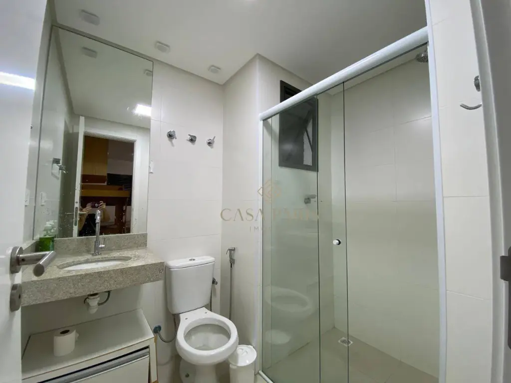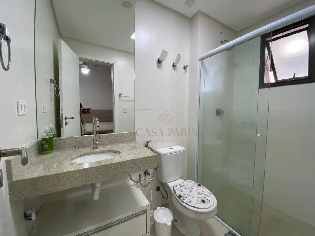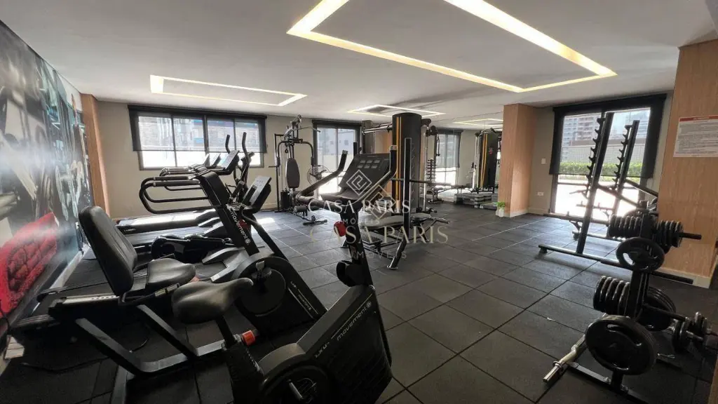 Imóvel PORTEIRA FECHADA, com 96 m², contendo 02 dormitórios, ambos suítes, chuveiros com aquecimento a gás, sala para dois ambientes, varanda gourmet envidraçada com churrasqueira a carvão, cozinha, área de serviço, lavabo, área técnica com infraestrutura para ar-condicionado e 02 vagas de garagem.
