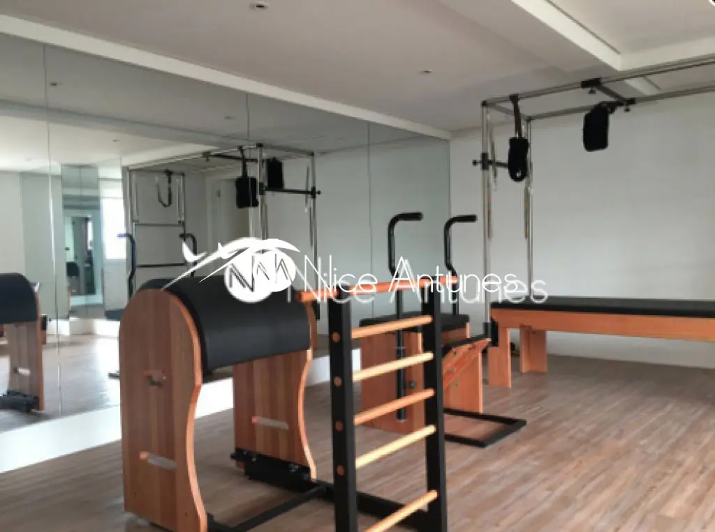 Condomínio com lazer de clube, Sala de ginástica, sala de Yoga, sala de Pilates, espaço para massagem, piscina aquecida com 25 M de raia, salão de festas integrado com espaço gourmet, espaço pet.