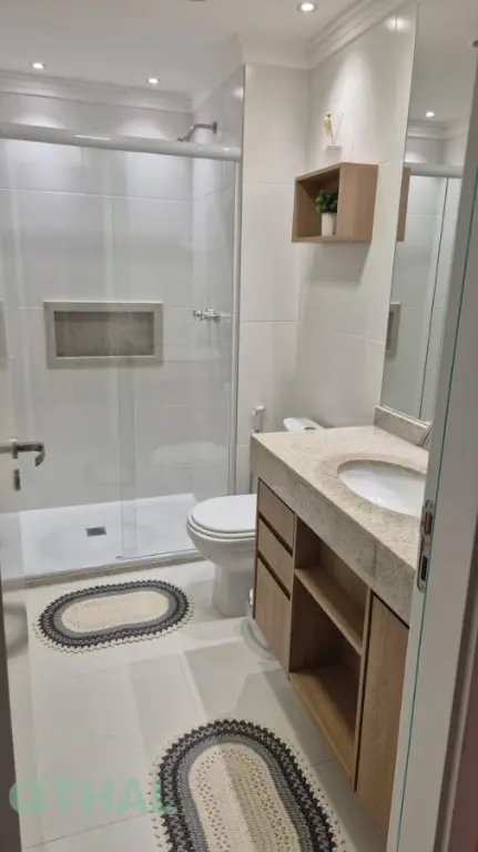 Com 2 quartos com armários embutidos, sala para 2 ambientes, cozinha com armários planejado, 2 banheiros no total, área de serviço, 1 vaga de garagem.