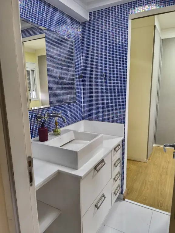 ÓTIMO APARTAMENTO COM ENTRADA SOCIAL E DE SERVIÇOS, 3 DORMITÓRIOS SUITES, SALA 2 AMBIENTES, VARANDA COM FECHAMENTO DE VIDROS, CHURRASQUEIRA A CARVÃO E PIA COM GABINETE, COZINHA, LAVANDERIA E 2 VAGAS DE GARAGEM NO SUB-SOLO.