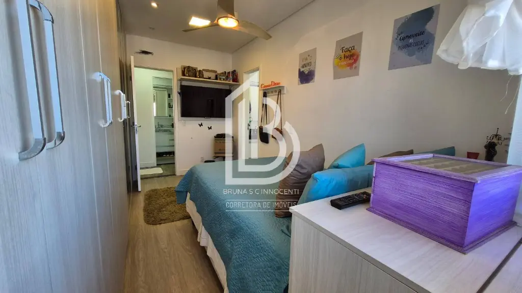 Armários planejados nos quartos, cozinha e banheiros.
