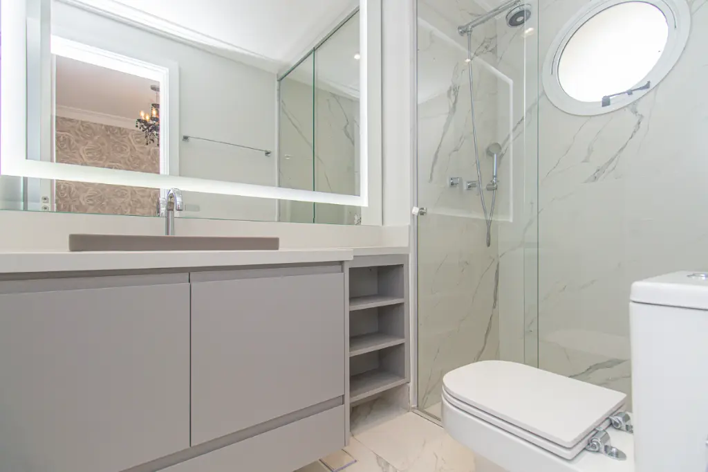A área de serviço é completa, com dependência de serviço com banheiro, atendendo perfeitamente às necessidades de um imóvel desse porte.