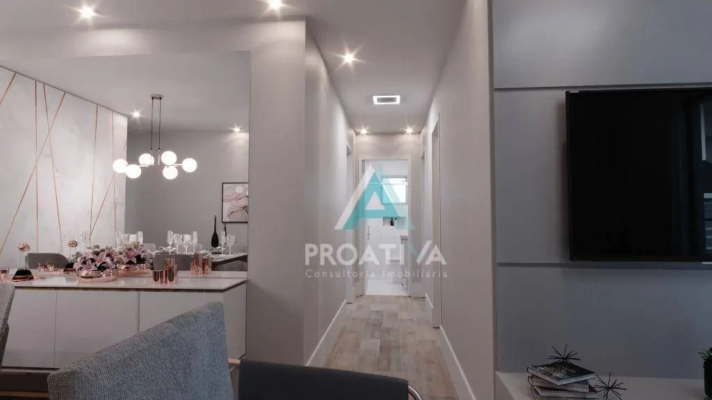 São 84,58m2 distribuídos em 03 dormitórios sendo 1 suíte, 02 banheiros completos, sala de jantar, sala de estar e varanda gourmet, corredor de circulação interna, cozinha e área de serviço.
