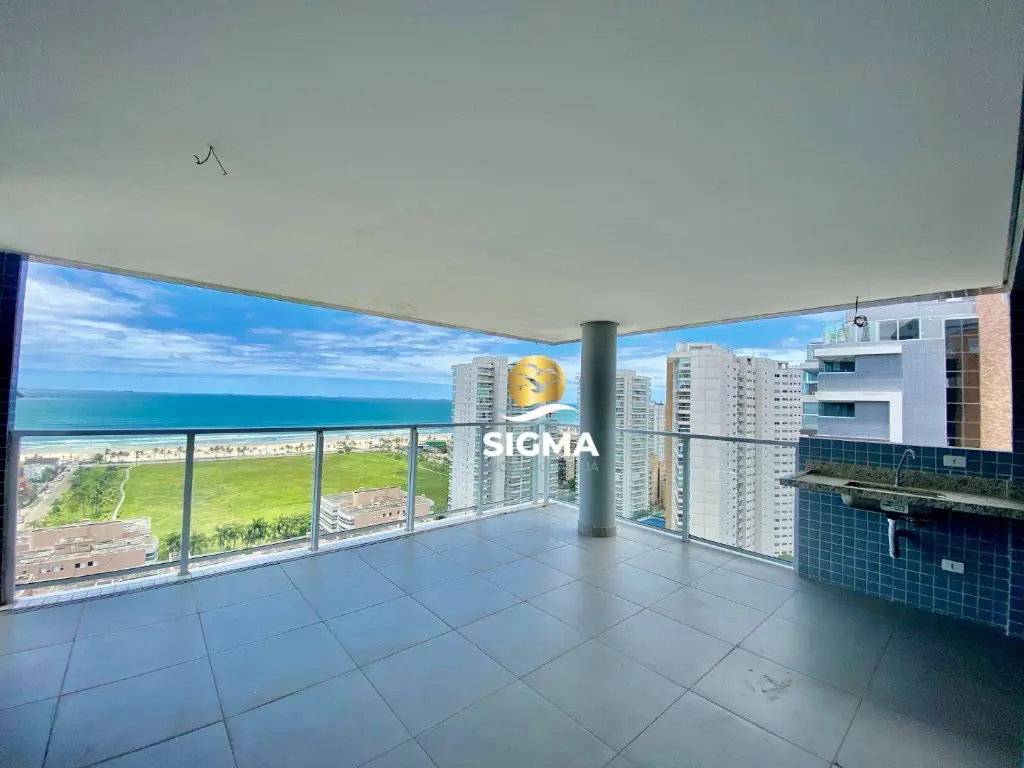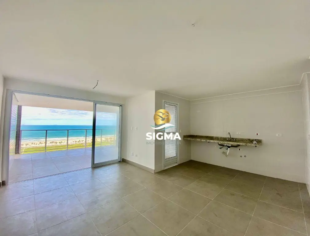 * Sala ampla com sacada varanda Gourmet e vista para o mar;