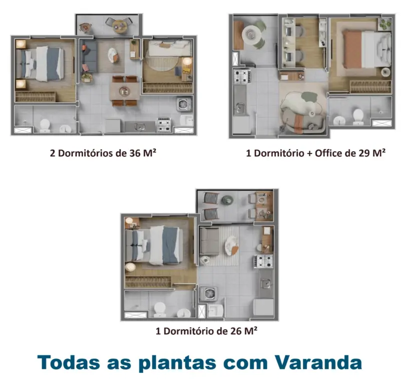 1 dormitório a partir de R$ 219.900