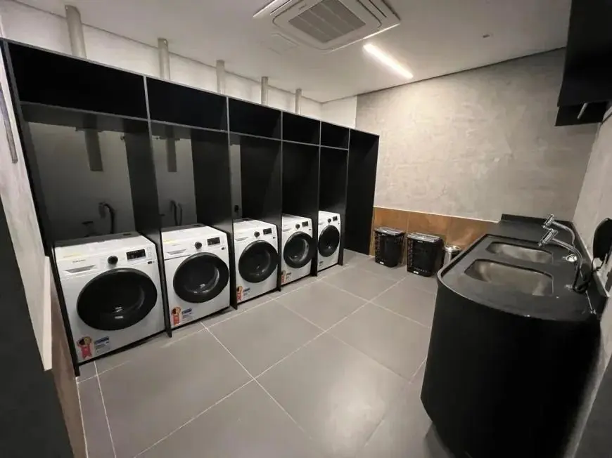 Portaria 24 horas, elevador, academia, salão de festas, salão de jogos e lavanderia no prédio.