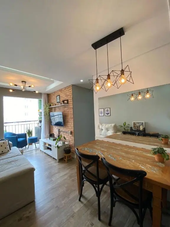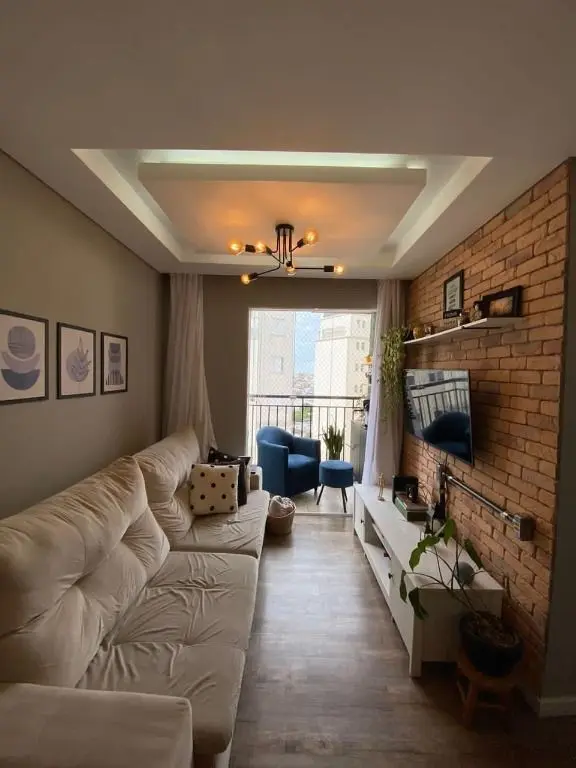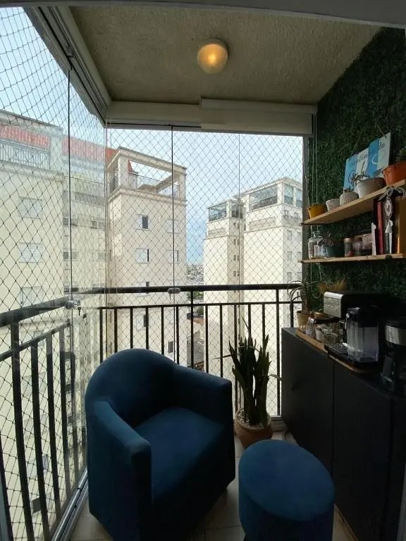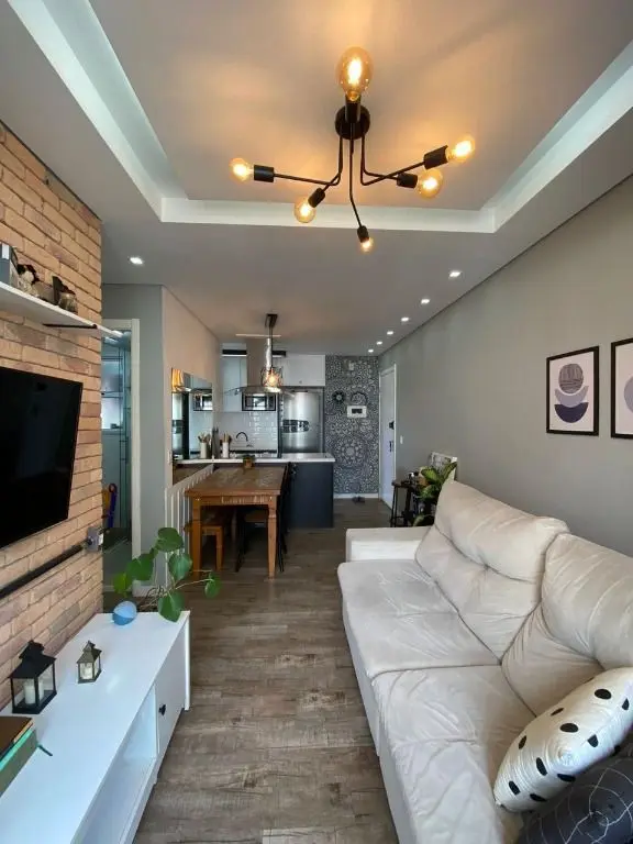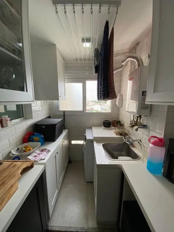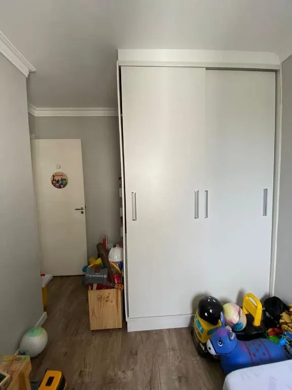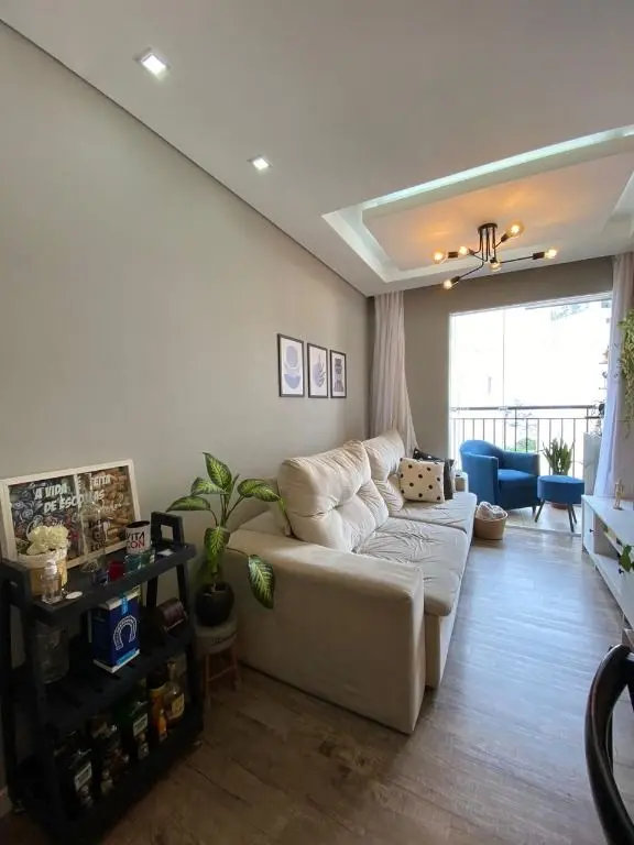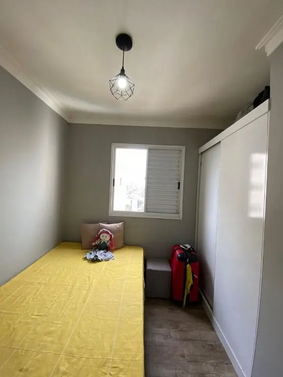 Possui sala ampla com piso laminado e sacada, cozinha com armários planejados e área de serviço, o apartamento oferece conforto e praticidade.
