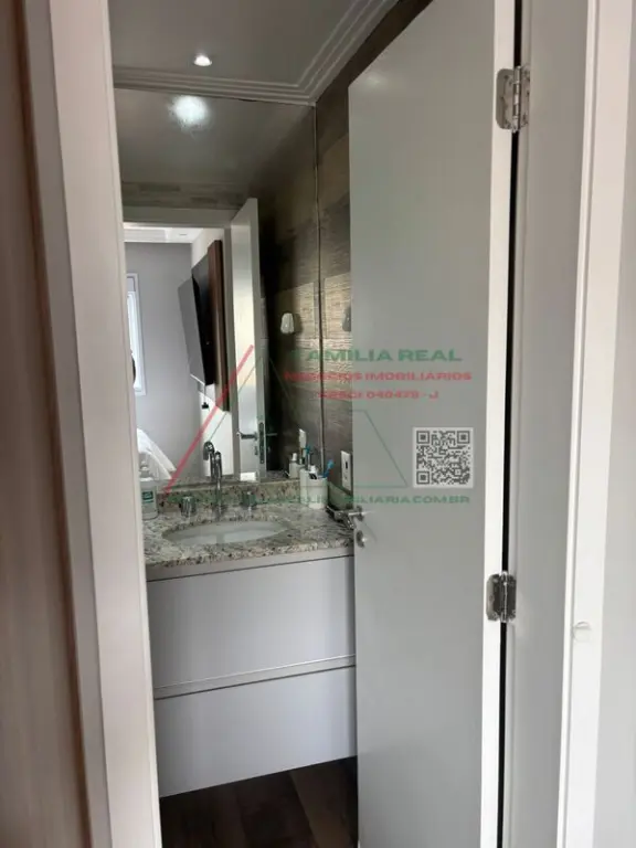 01 Dormitório/Suíte com armários planejados, painel p/tv até 80" banheiro com box de vidro, gabinete com bancada estendida e espelho na parede