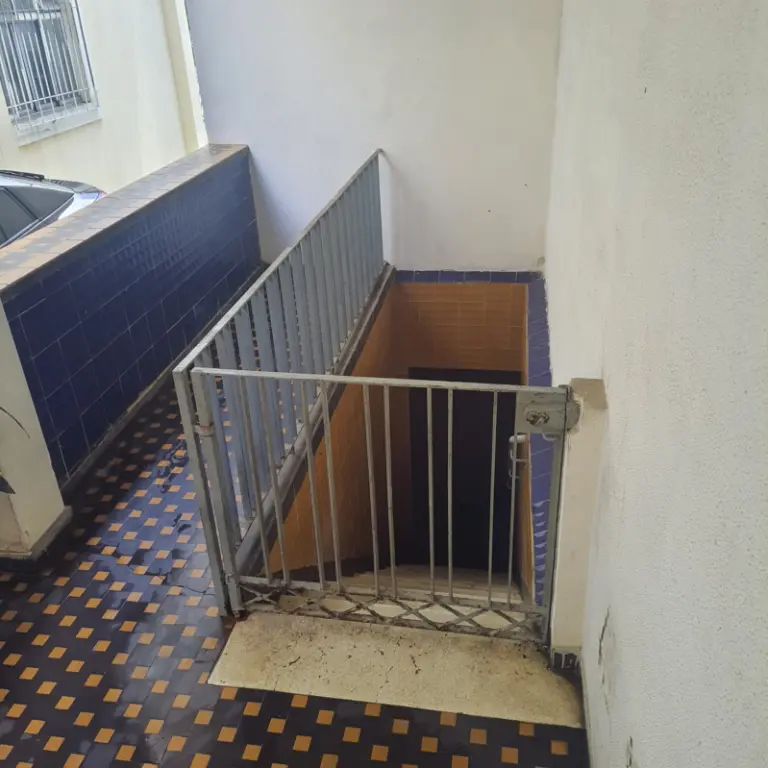 Fechada e com capacidade para até 5 carros, incluindo um banheiro.