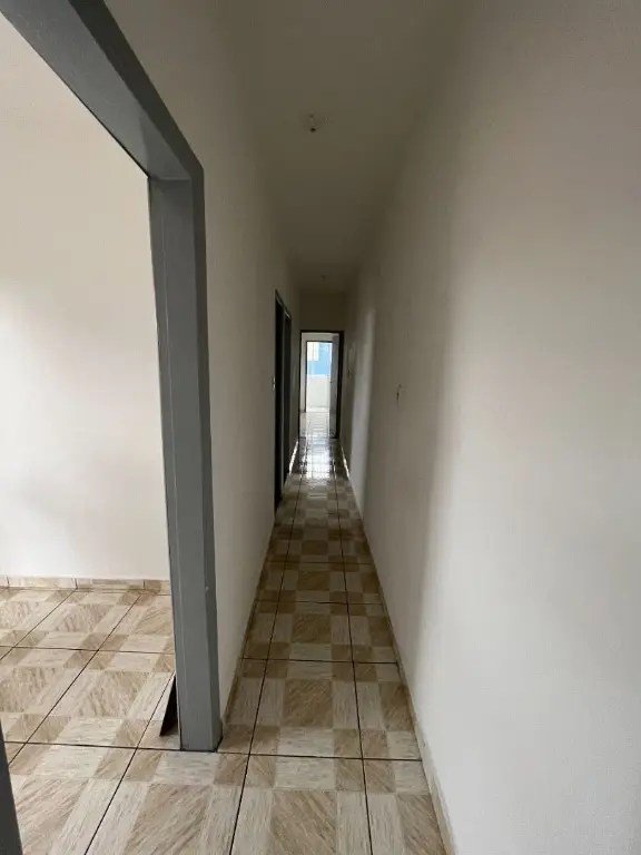 A casa fica em cima e possui 01 dormitório grande, sala, cozinha, banheiro, lavanderia, um pequeno hall e 01 vaga de garagem coberta.