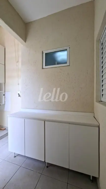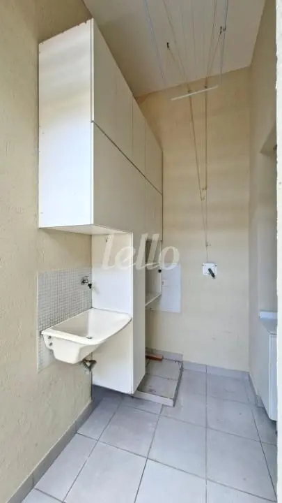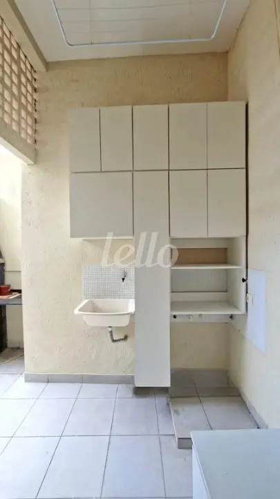 Área de serviço coberta e com armários, prática para o dia a dia.