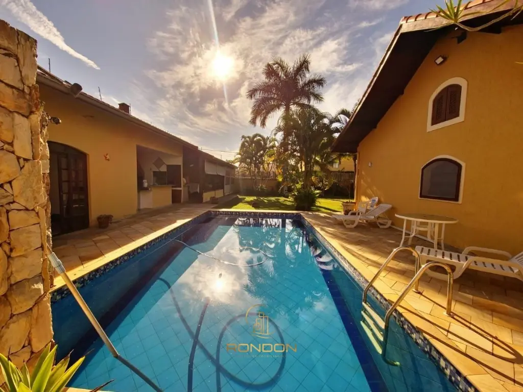 Na parte externa, o imóvel se destaca pelo quintal amplo e gramado, piscina, churrasqueira com área gourmet, perfeita para receber familiares e amigos, e ainda conta com edícula, agregando versatilidade ao espaço.