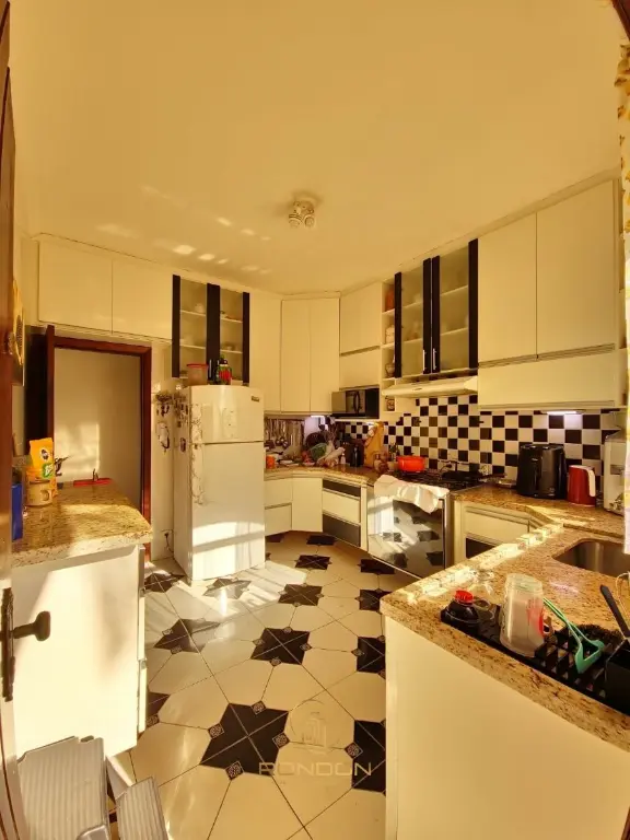 A área social conta com sala de estar e sala de jantar integradas, proporcionando amplitude e conforto. A cozinha planejada oferece praticidade no dia a dia, além de área de serviço funcional.