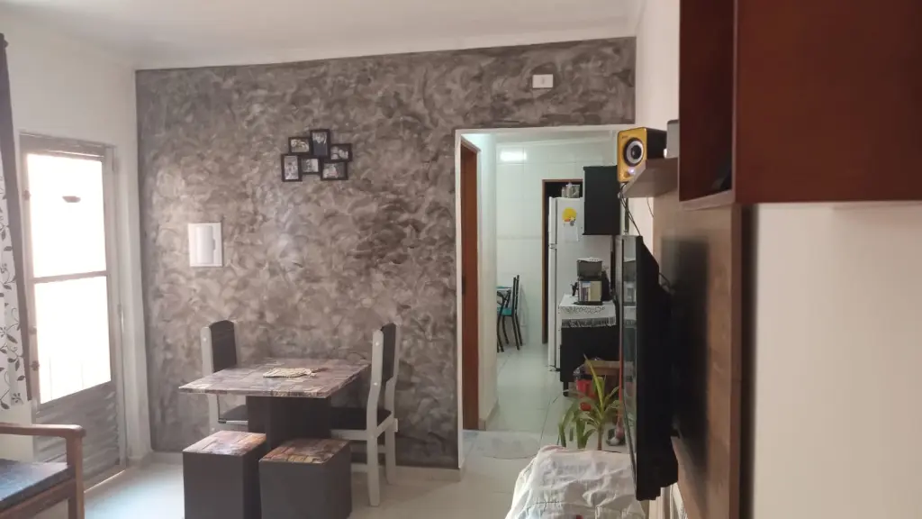 Possui 2 dormitórios, sendo 1 suíte, sala, cozinha, banheiro, área de serviço, quintal na parte superior.