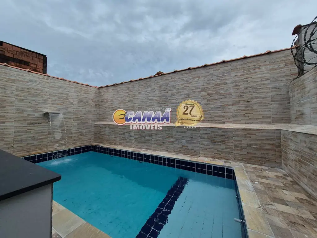 Linda casa com 2 dormitórios (1 suíte), sala, cozinha, banheiro, churrasqueira e uma piscina com cascata perfeita para curtir com a família!