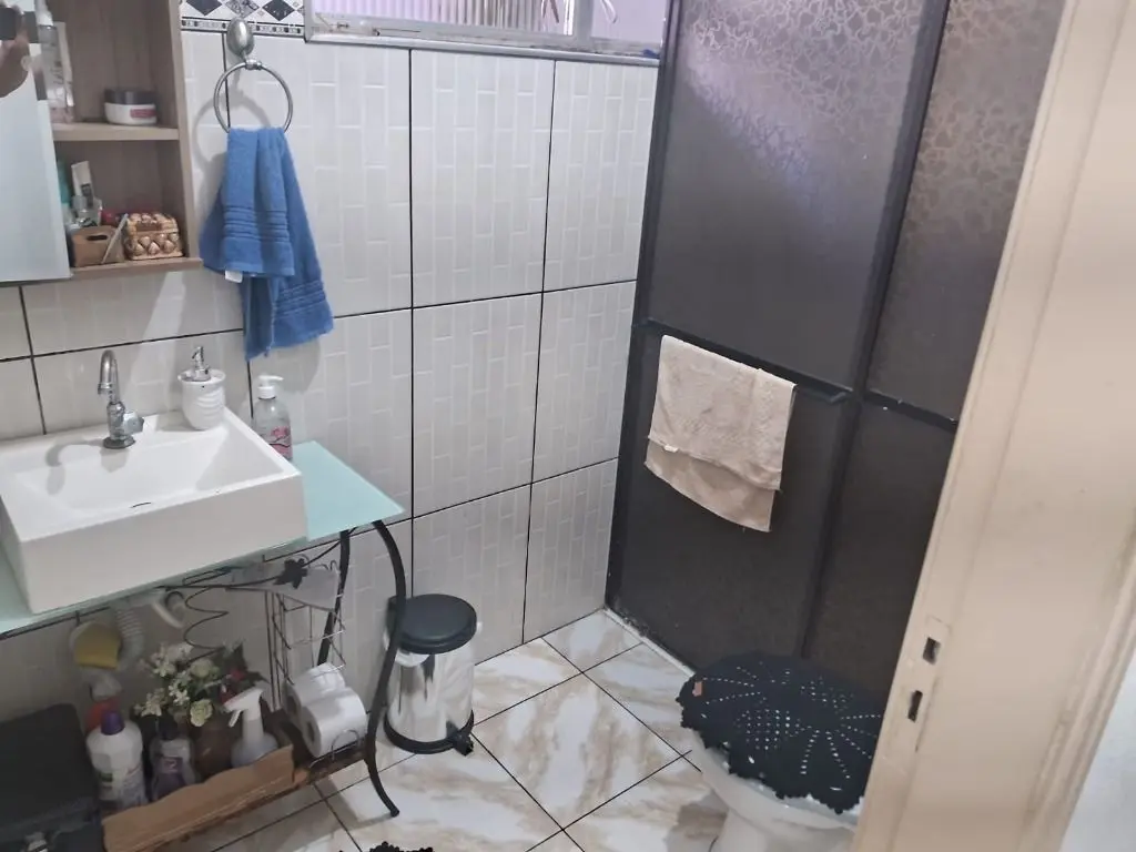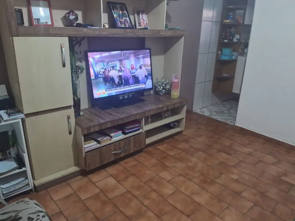 2 dormitórios, sala cozinha, banheiro social, churrasqueira e banheiro externo na varanda da cozinha, garagem coberta para 2 carros com portão eletrônico