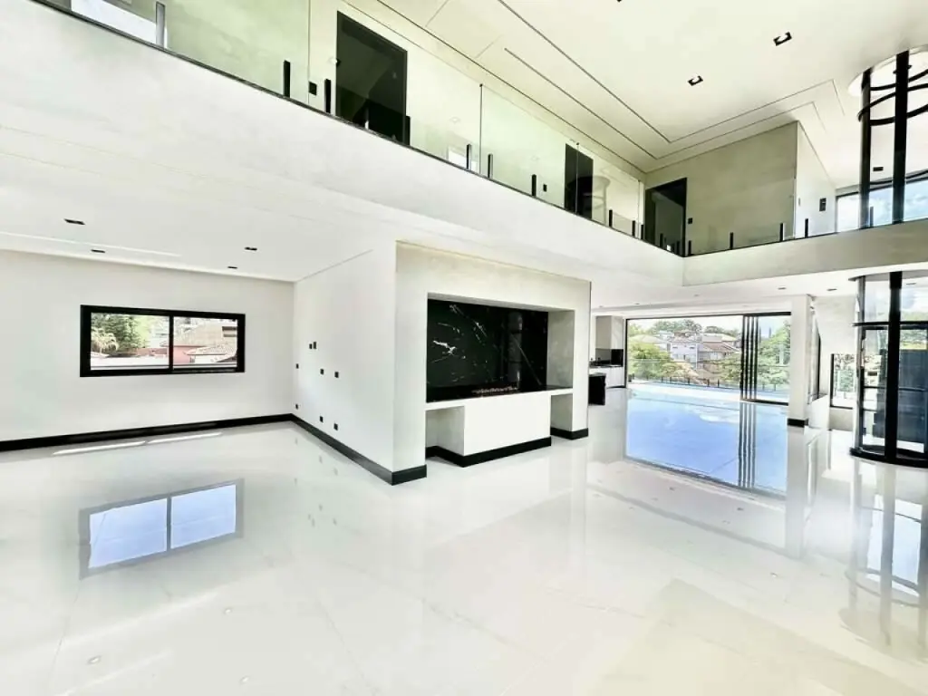 Living para 5 ambientes totalmente integrados, em parte com pé direito duplo.