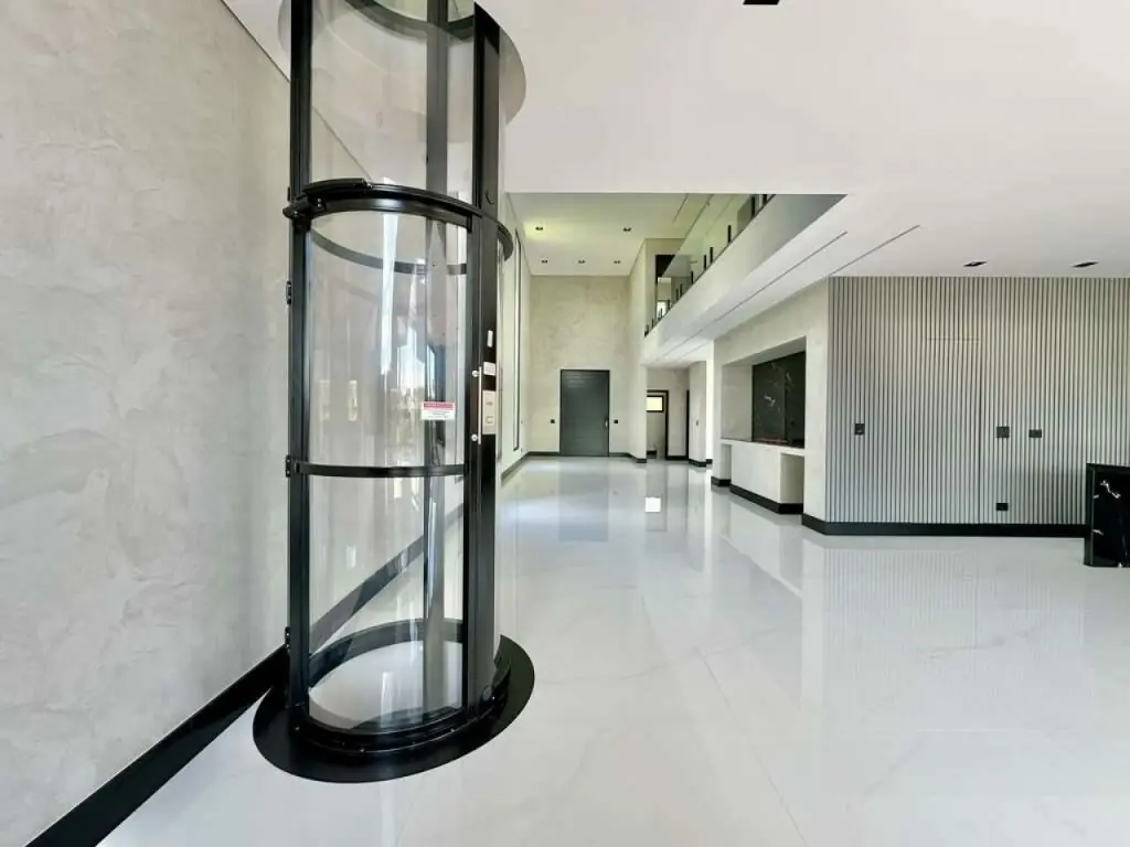 COM ELEVADOR CÁPSULA ELEVAC PARA 2 PESSOAS, QUE ATENDE A TODOS PISOS DA CASA.