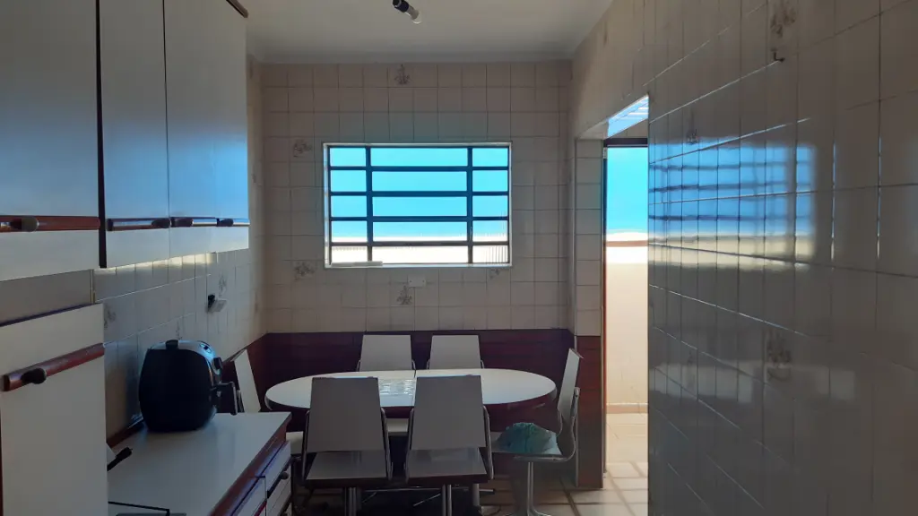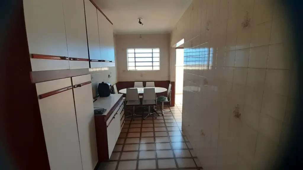 Ambientes da Casa: Sala, 3 dormitórios, Banheiro social, Cozinha ampla em formato "L", Área de serviço e quintal nos fundos com aproximadamente 36m².