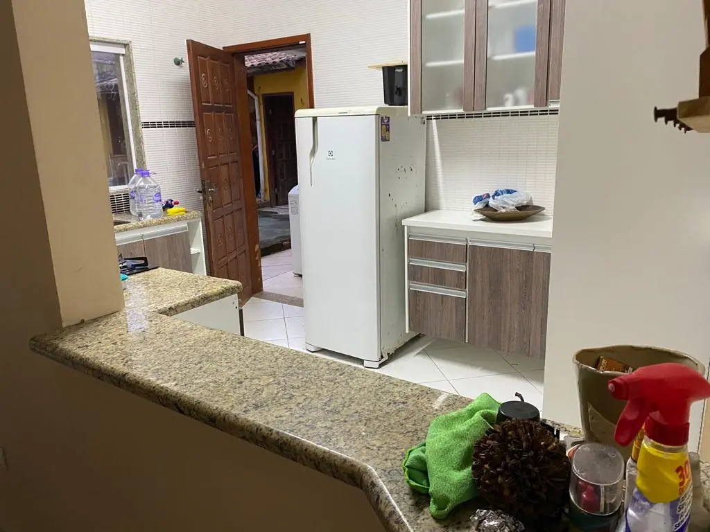 A casa tem sistema de alarme, piso em porcelanato, 1 banheiro externo.