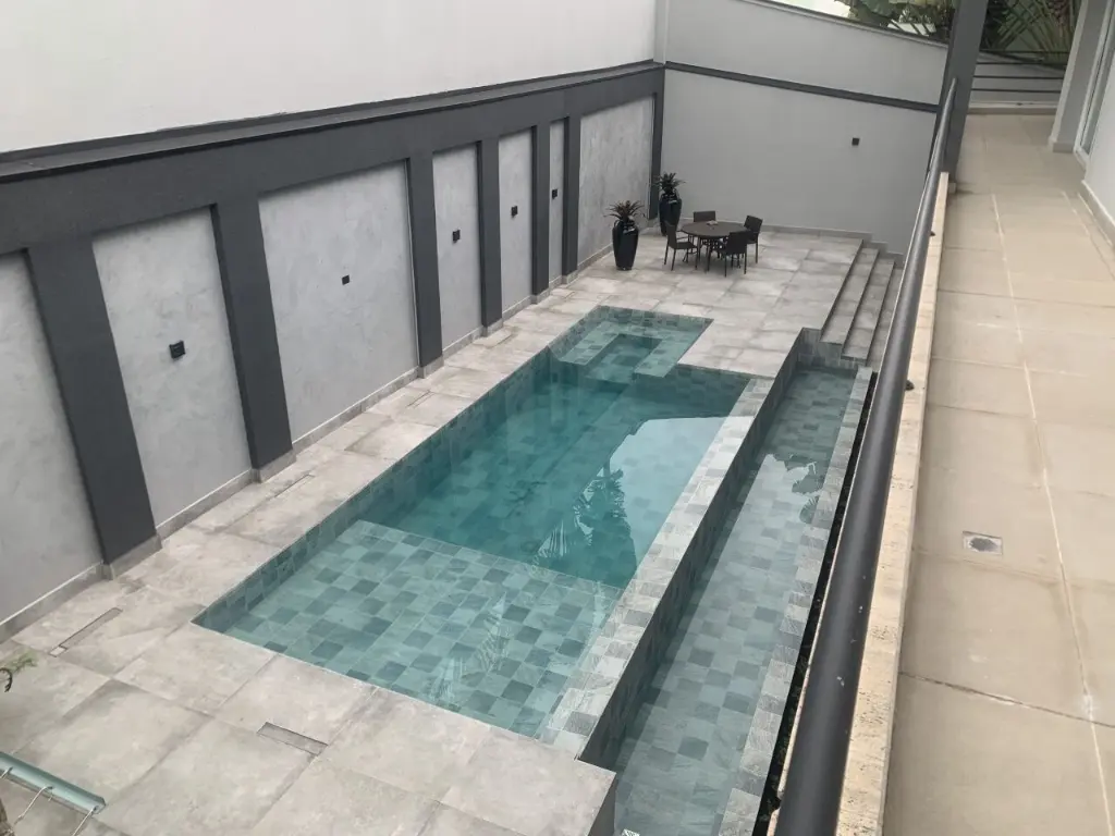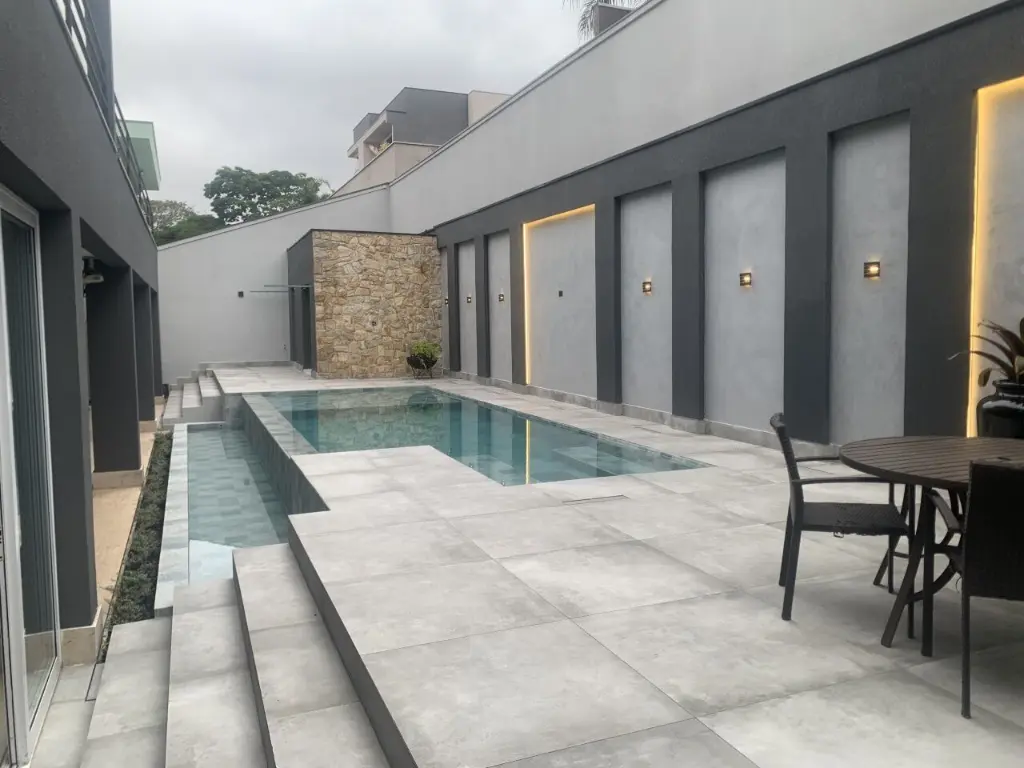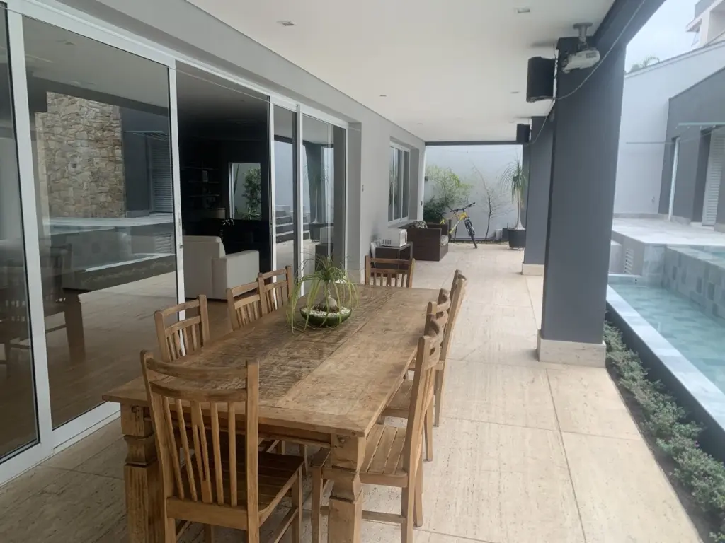 Sala para 3 ambientes, lateira, hall, escritório com banheiro com saida independente, copa, cozinha planejada, lavanderia planejada, quarto de empregada, que quarto de bagunça, area Gourmet, piscina com aquecedor solar, 2 banheiros externos, sala de maquinas da piscina, jardim com frutas e flores.