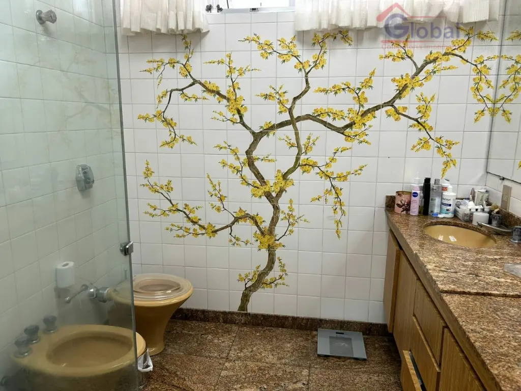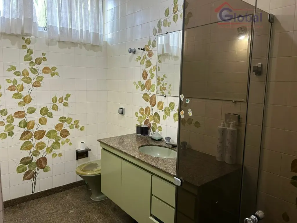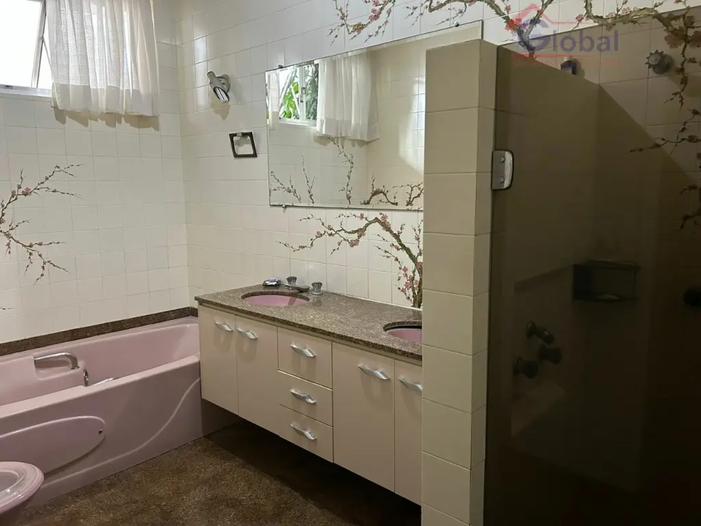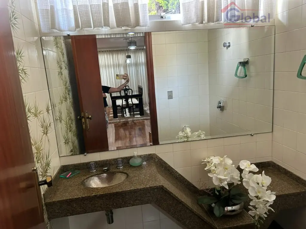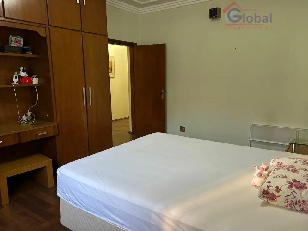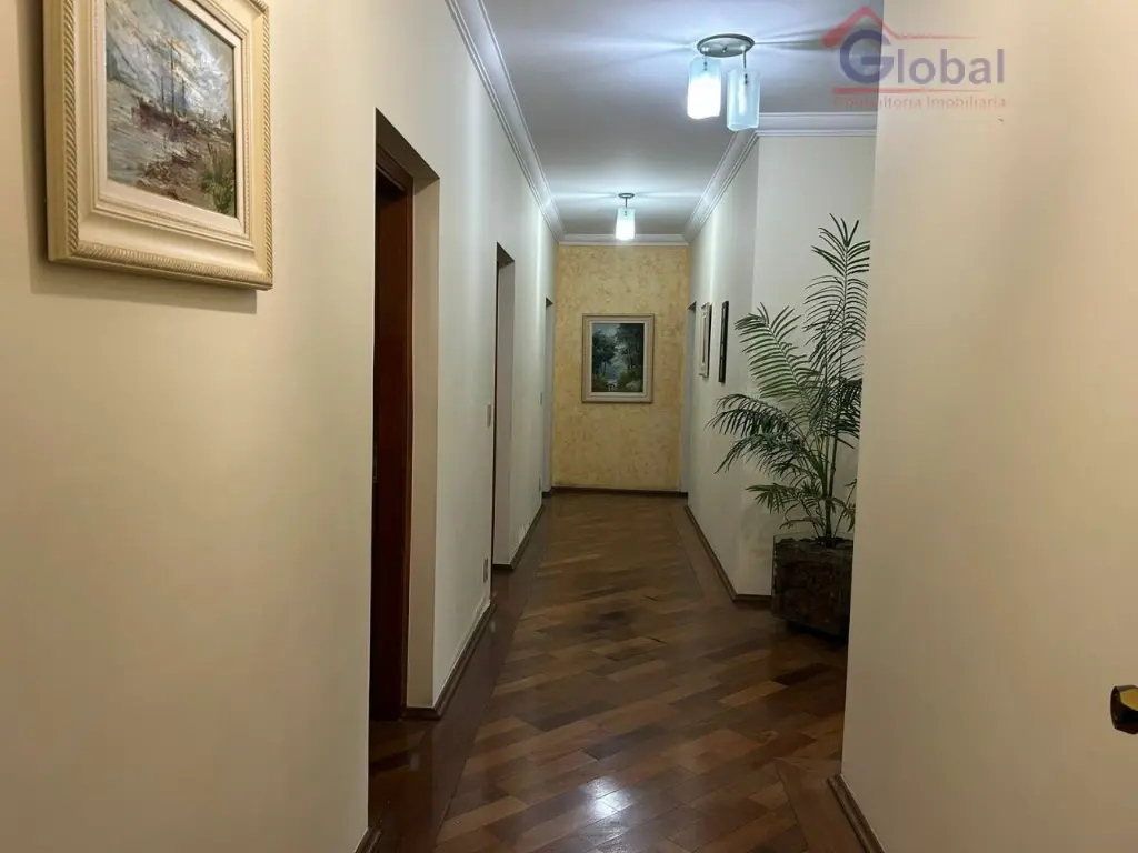 5 dormitórios, 5 banheiros, 2 lavandeiras, salão de festas, churrasqueira, dispensa, cozinha, sala de jantar, sala de estar, escritório, dormitório de funcionário, lavabo, depósito e 6 vagas de garagem.
