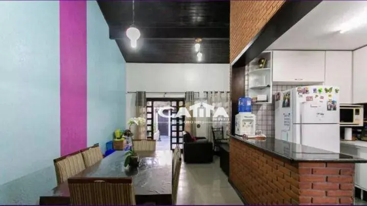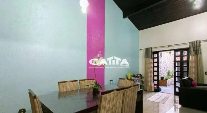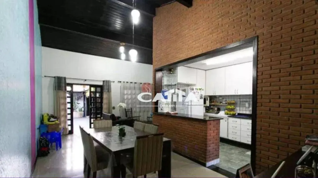 São 3 quartos espaçosos sendo 1 suíte, sala de estar e jantar com pé direito alto, cozinha tipo americana com armários planejados e piso em porcelanato, corredor lateral com quintal, lavanderia e churrasqueira, acesso a pequeno terraço.