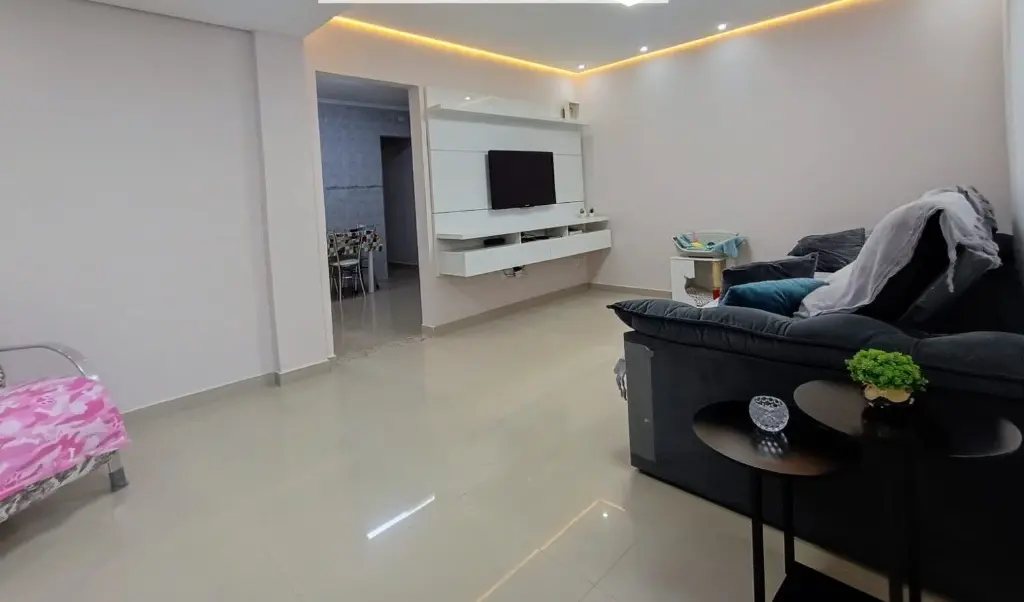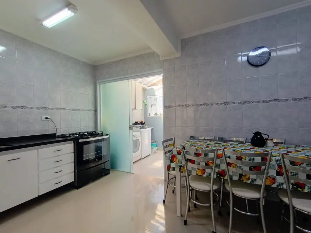 Espac¸osa casa de 3 Dormito´rios, sendo 1 sui´te, cozinha planejada e 2 Banheiros, com uma a´rea construi´da de 122m2, disponi´vel para compra no bairro Maua´ em Sa~o Caetano do Sul-SP. Possui porta~o automa´tico e 2 vagas de garagem paralelas coberta.