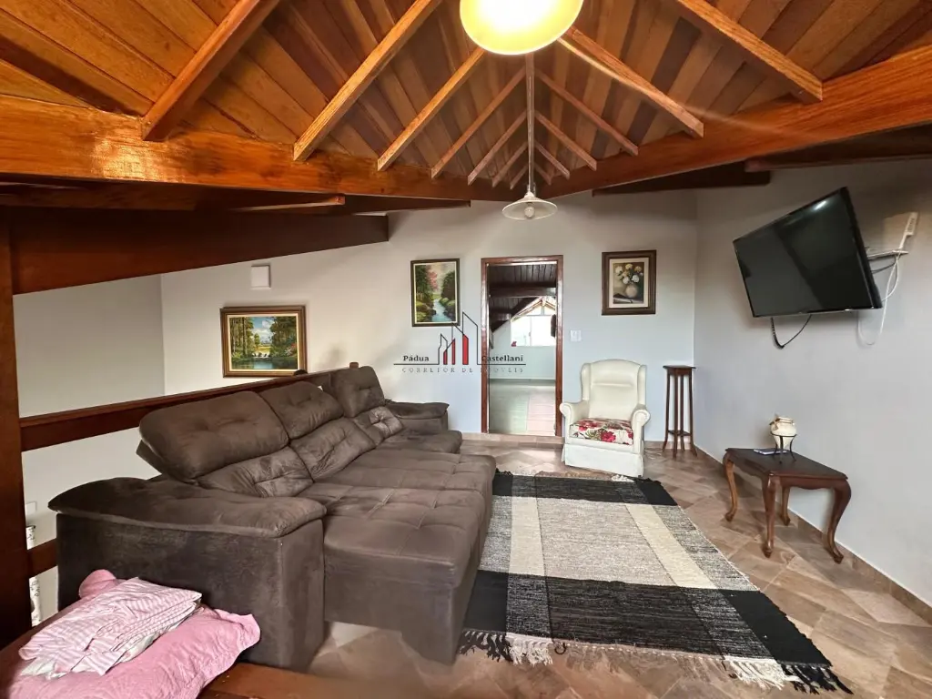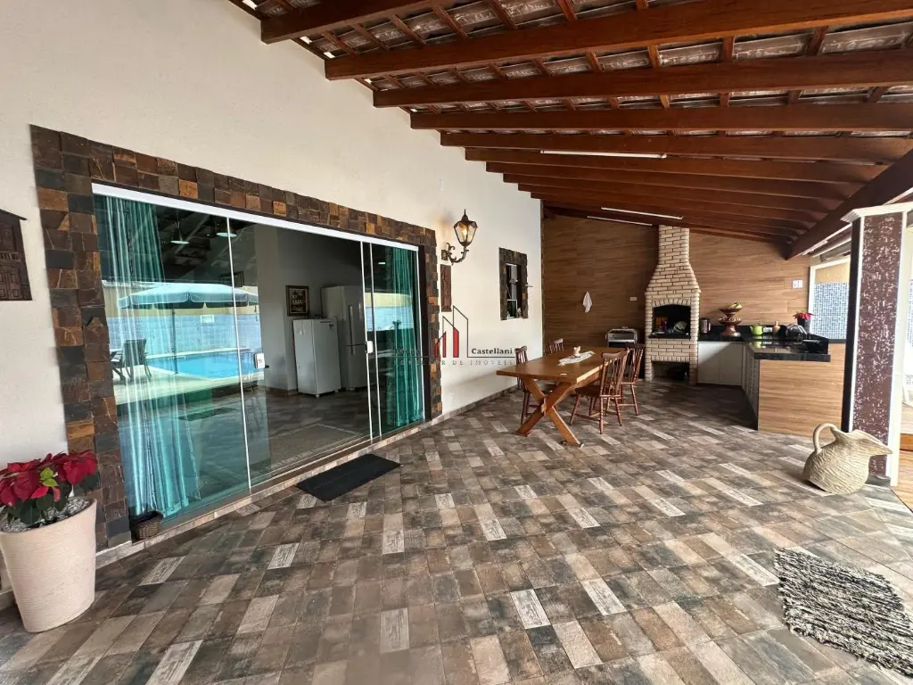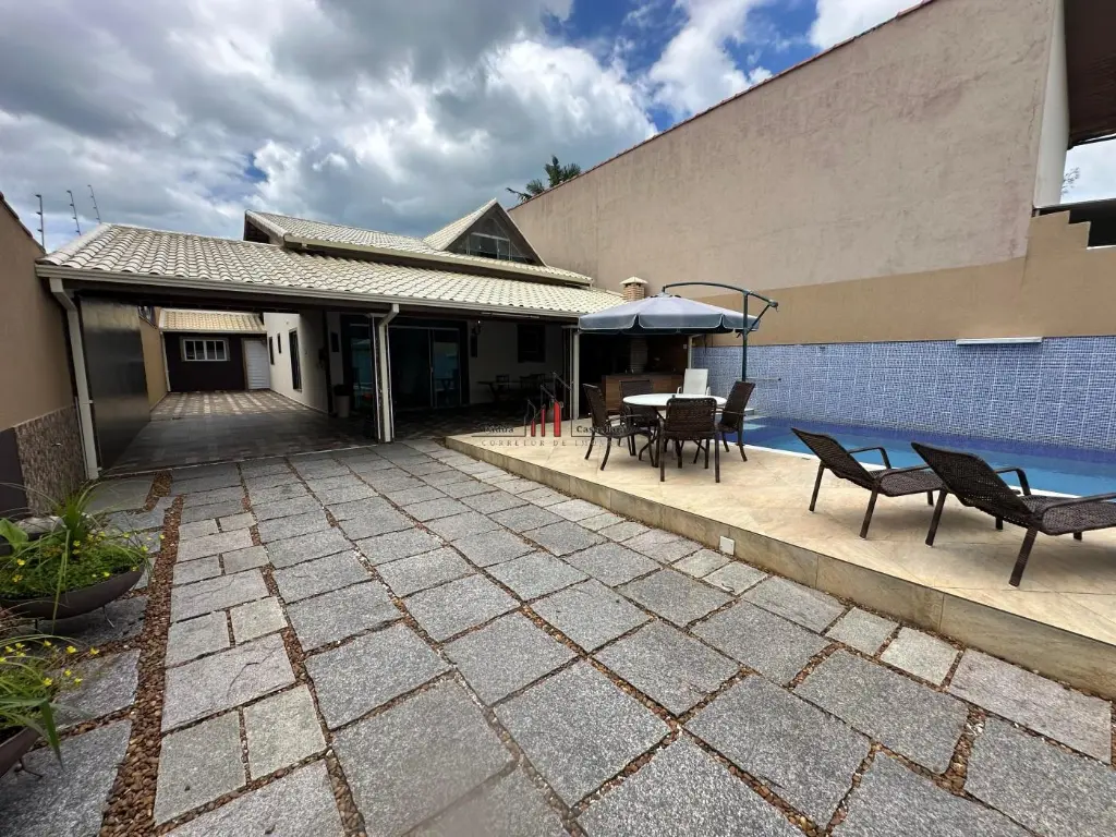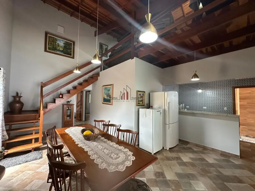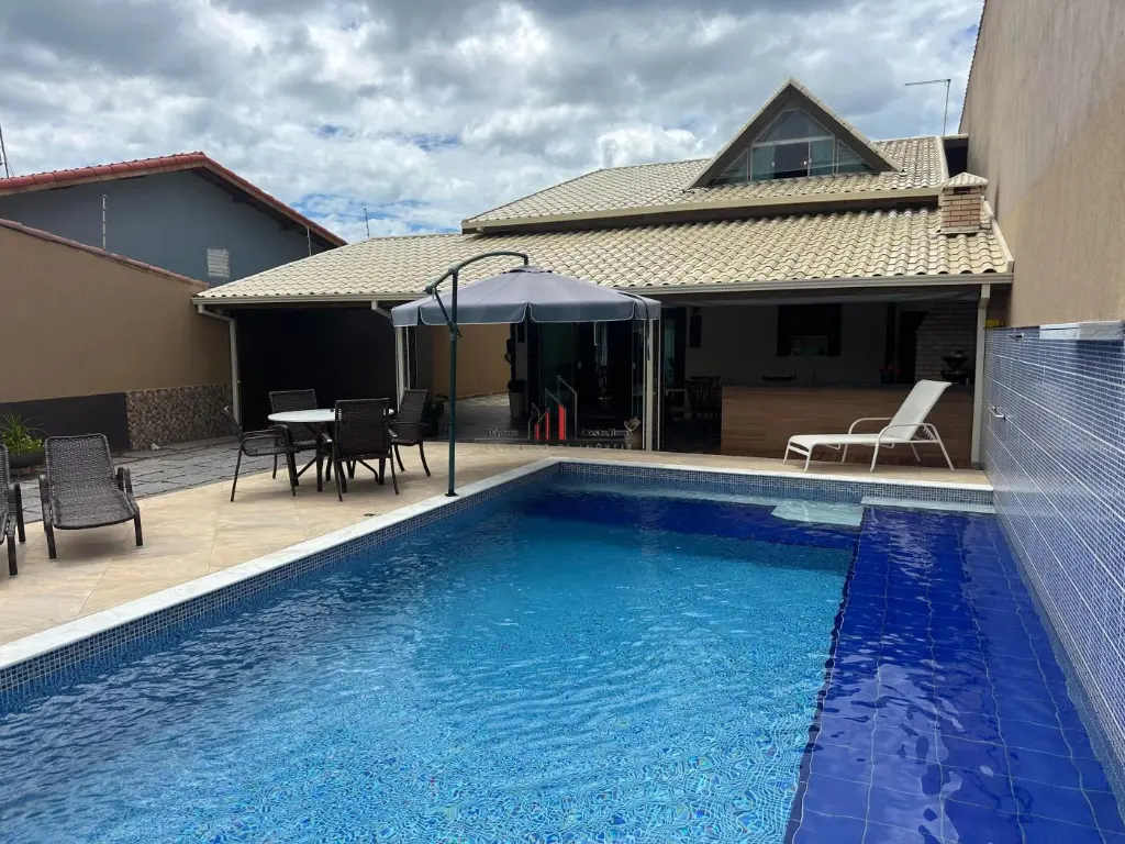 Possui: Churrasqueira, piscina portão automático, pé direito alto, cerca életrica e vaga para 05 automóveis
