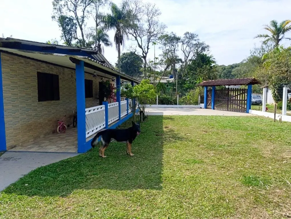 Casa com varanda frontal, 4 dormitórios, 1 banheiro, sala, cozinha, área de churrasqueira, terreno plano, grande área gramada, poço, toda cercada, vaga para mais de 5 carros.