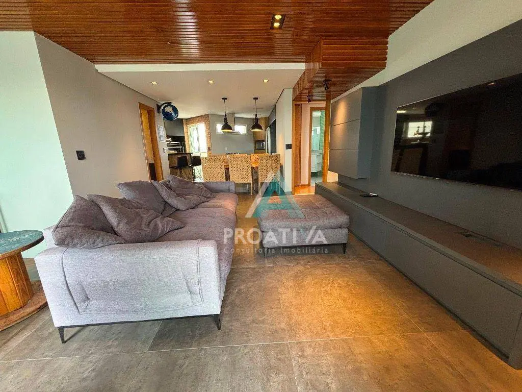 São 200m² de área útil, distribuídos em 03 suítes, sendo 01 master com closet, amplo living 02 ambientes com sacada, cozinha com armários planejados, área de serviço com armários 06 vagas de garagem. No piso superior excelente área gourmet com hidromassagem.
