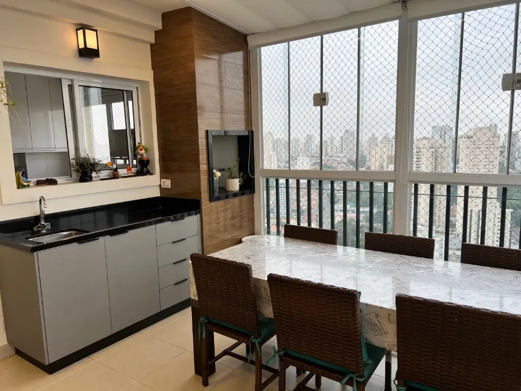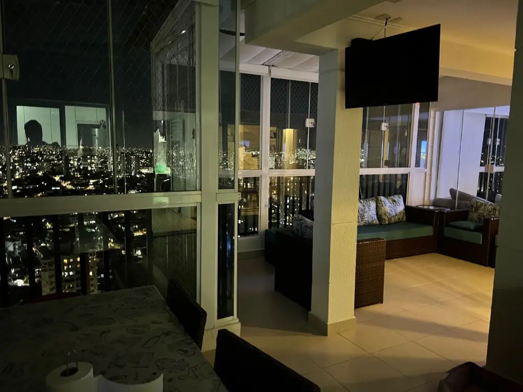 Apartamento Duplex na cobertura e no estilo sobrado (escada tradicional e quartos no segundo nível). Vista livre total e panorâmica de toda a cidade. Suíte Master com closet e varanda. Armários planejados de alto padrão, fina decoração. Ar-condicionado (quente e frio) em todos os ambientes (cada quarto + salas) e, detalhe importante: as caixas externas não ocupam espaço nas varandas, pois este apto possui área técnica específica na parte externa!!! Varandas totalmente cobertas, com churrasqueira tradicional independente e exaustor próprio. Estuda "porteira fechada" !!! Totalmente pronto para morar! Condomínio / empreendimento novo, moderno e no estilo clube. Conta com 3 piscinas aquecidas, quadra de squash, poliesportiva, cinema, academia, sauna, salão de jogos, mercado, salão de festas amplo integrado com churrasqueira.