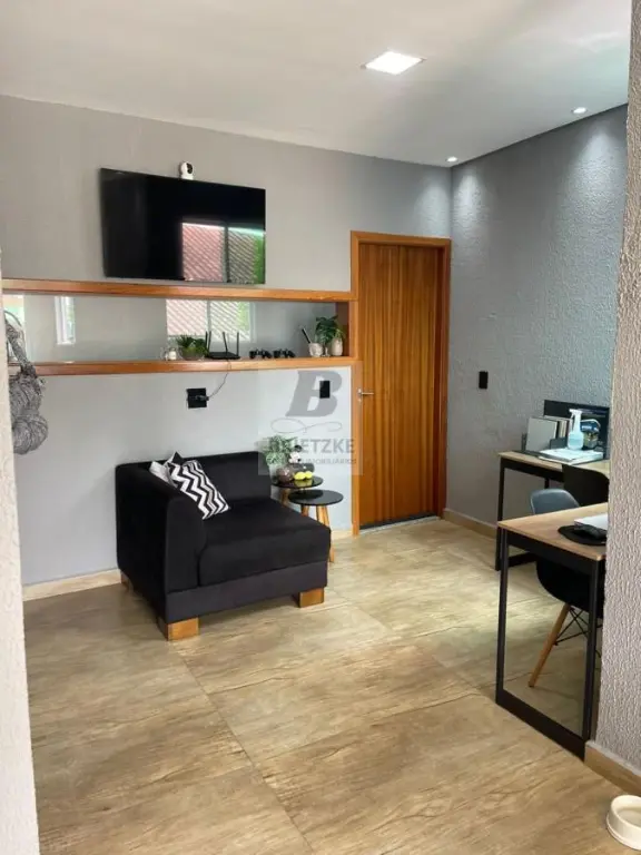 O acabamento refinado traz porcelanato, teto rebaixado em gesso e luzes embutidas criam um ambiente acolhedor e contemporâneo.