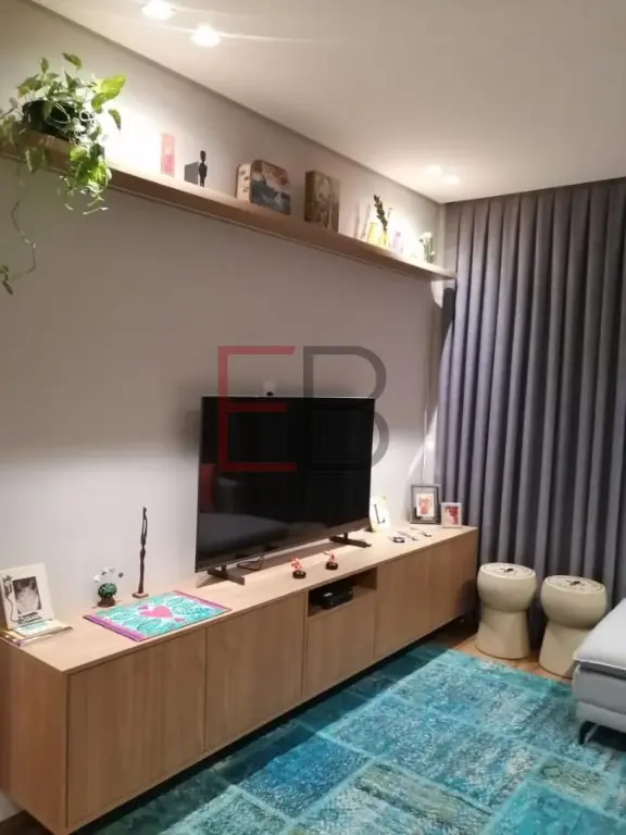 - Sala com rack planejado e prateleira com led.