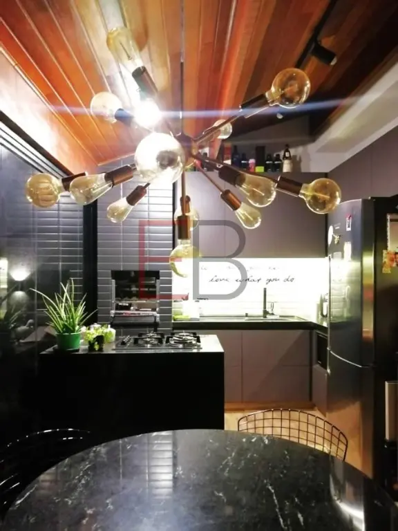 - Forro de gesso em todo o apartamento e forro de madeira na cozinha, Iluminação embutida e trilhos de iluminação na cozinha.