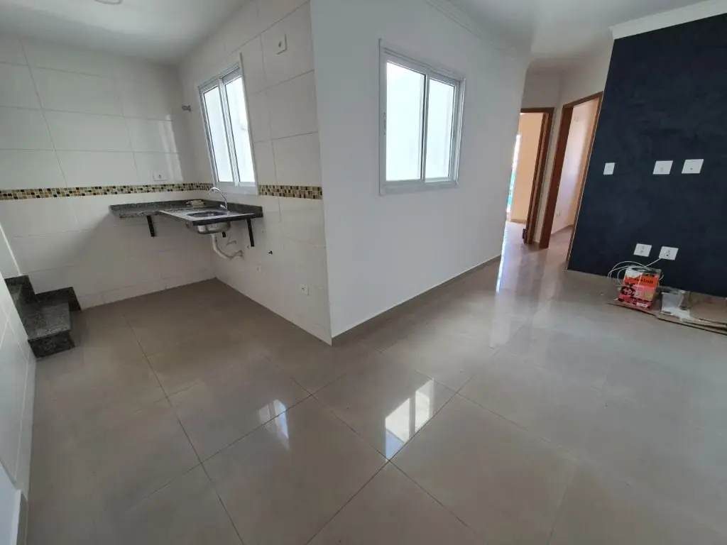 Este apartamento à venda em Santo André apresenta uma planta distribuída em dois níveis, proporcionando melhor aproveitamento dos espaços. No pavimento inferior, a área social conta com sala integrada à cozinha, criando um ambiente funcional para o cotidiano.
