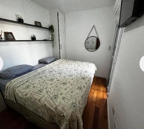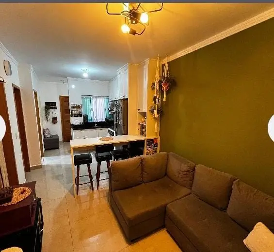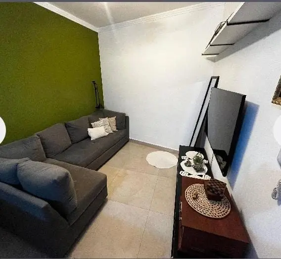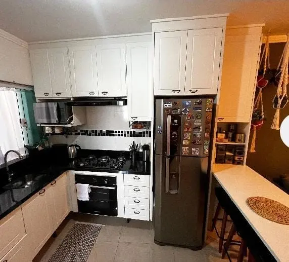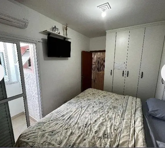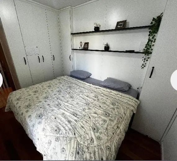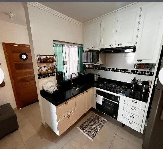 Casa de condomínio (tipo apartamento), em rua silenciosa. Incluso armários na cozinha e no quarto, bancada com 4 cadeiras, geladeira, forno e fogão cooktop, ar condicionado, ventilador de teto, box no banheiro, cama king size com baú e sacada fechada. 2 quartos e uma vaga de garagem. Não aceita pets. Projeto feito por design de interiores.