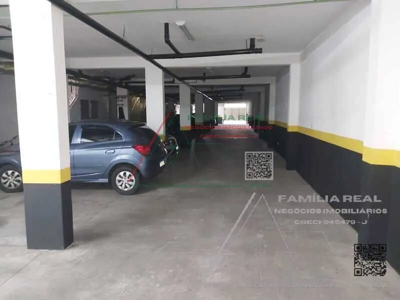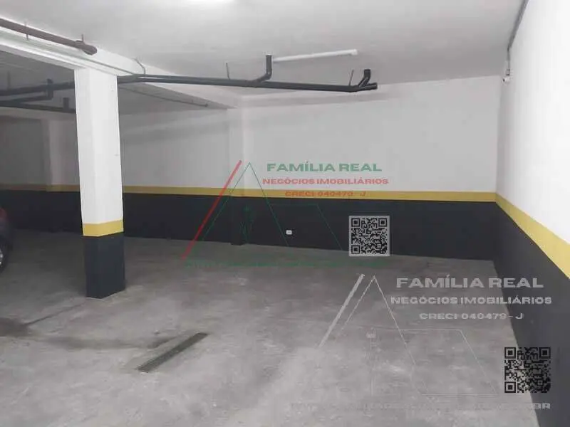2 vagas de garagem cobertas e deposito individual com prateleiras.
