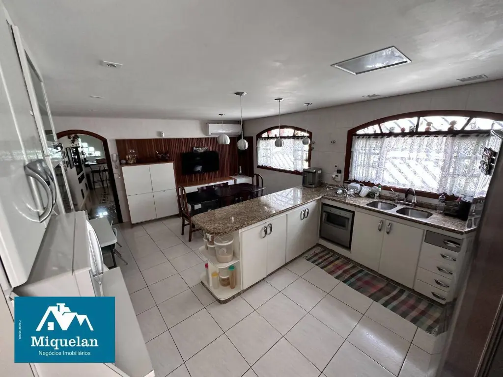 Cozinha espaçosa com dois ambientes e ar-condicionado