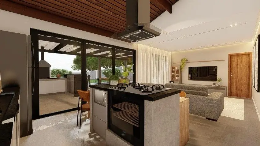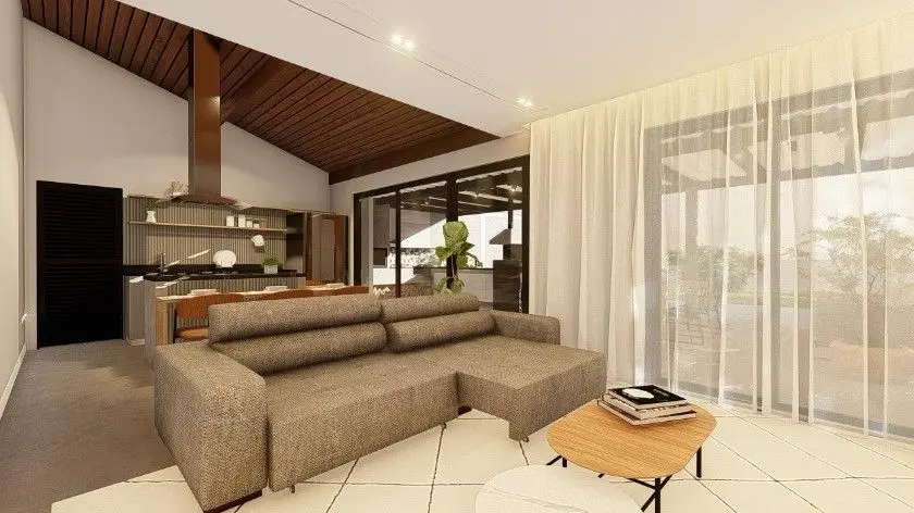 Casa em Condomínio Fechado, terreno privativo com 1000 m² gramado .2 suítes, ampla sala integrada a cozinha, área de serviço, varanda gourmet, garagem para vários carros, excelente jardim gramado.