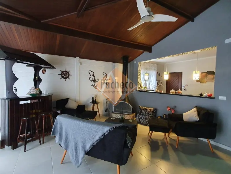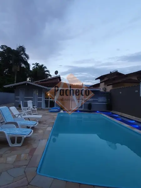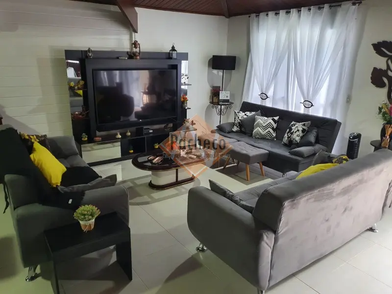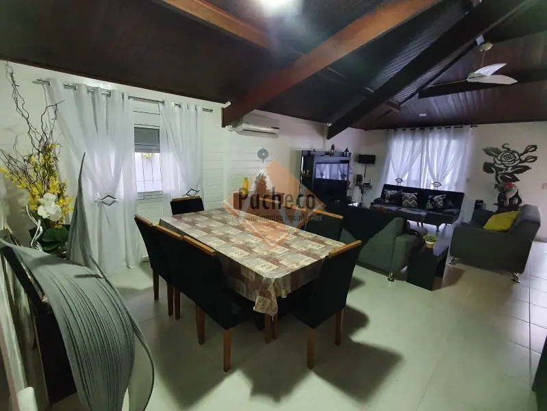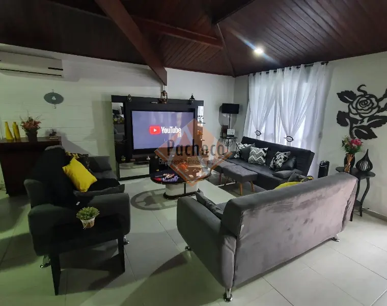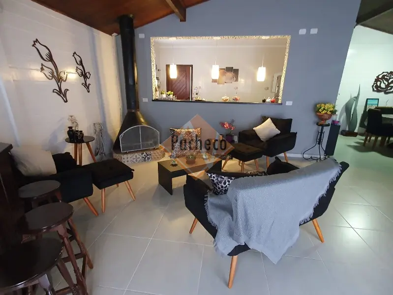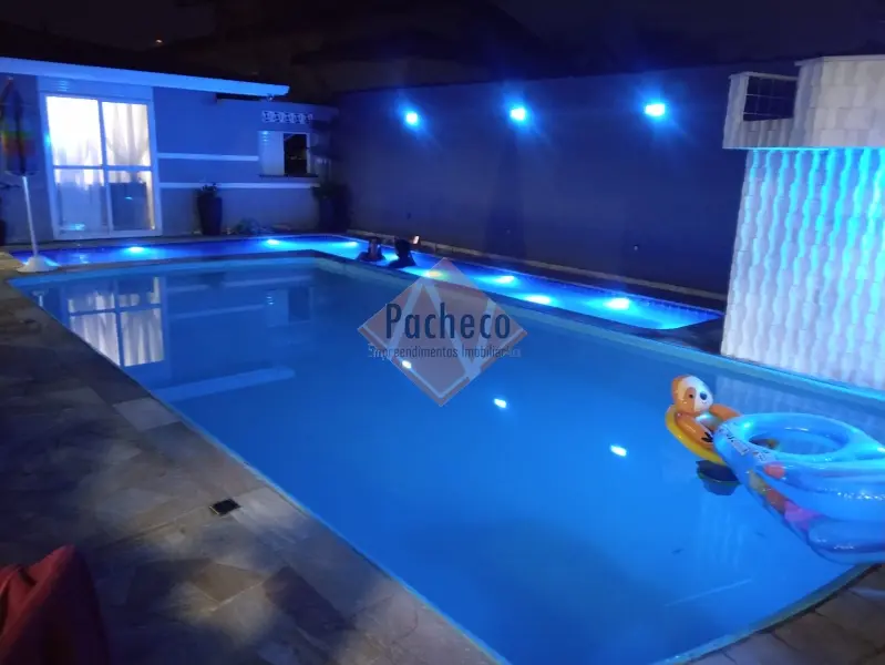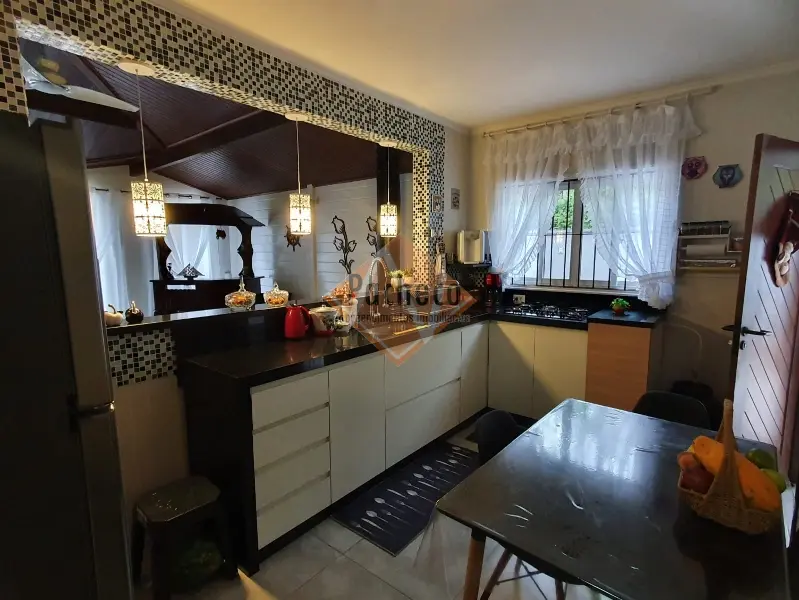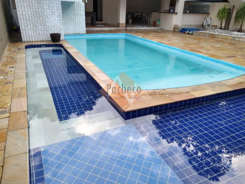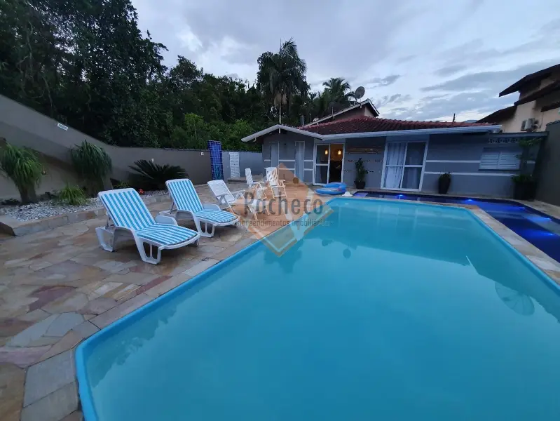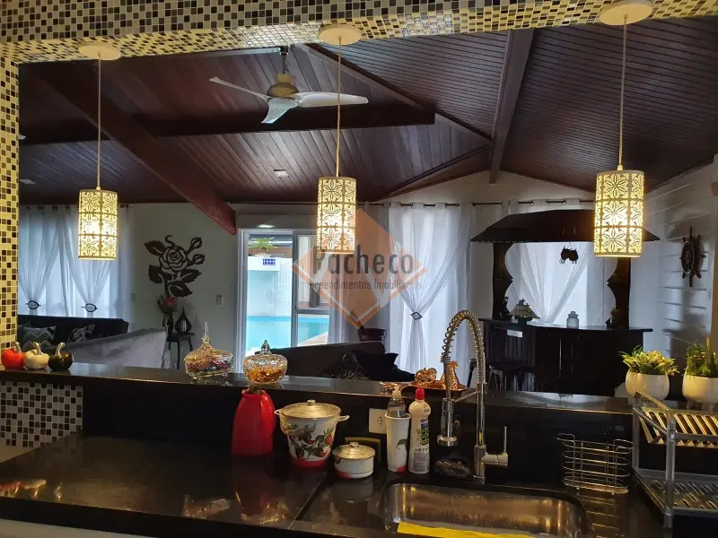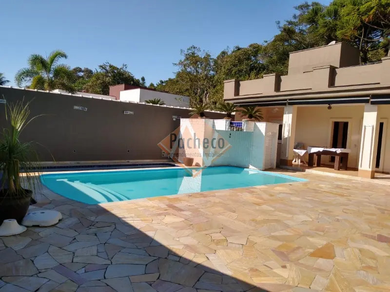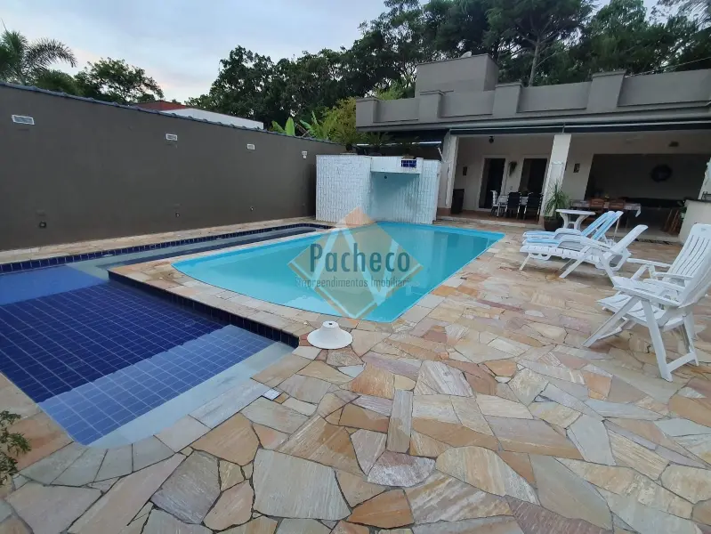 Casa Térrea com 3 dormitórios sendo 1 suíte, sala de estar com lareira, sala de TV, cozinha americana planejada, 4 banheiros, 2 piscinas, espaço gourmet com churrasqueira, salão de jogos, sauna e 3 vagas de garagem, área do terreno de 690m².