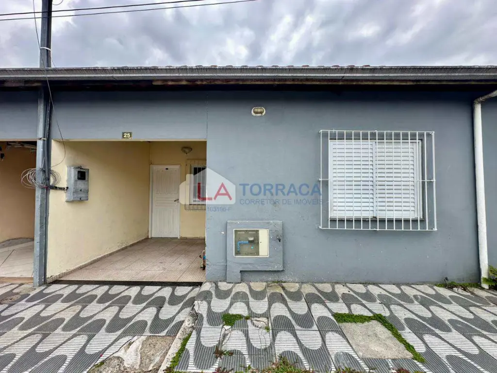 Referência 15843 - Casa de Condomínio, com 2 dormitórios, sala, cozinha, banheiro, quintal com área de serviço. Condomínio com churrasqueira, garagem. Excelente localização no bairro do Quietude em Praia Grande!