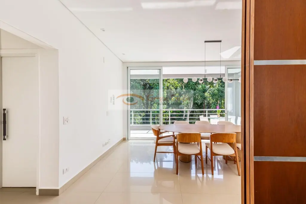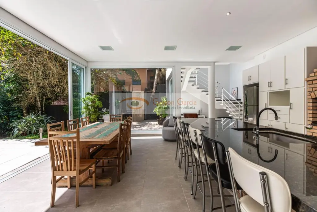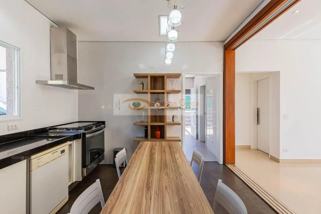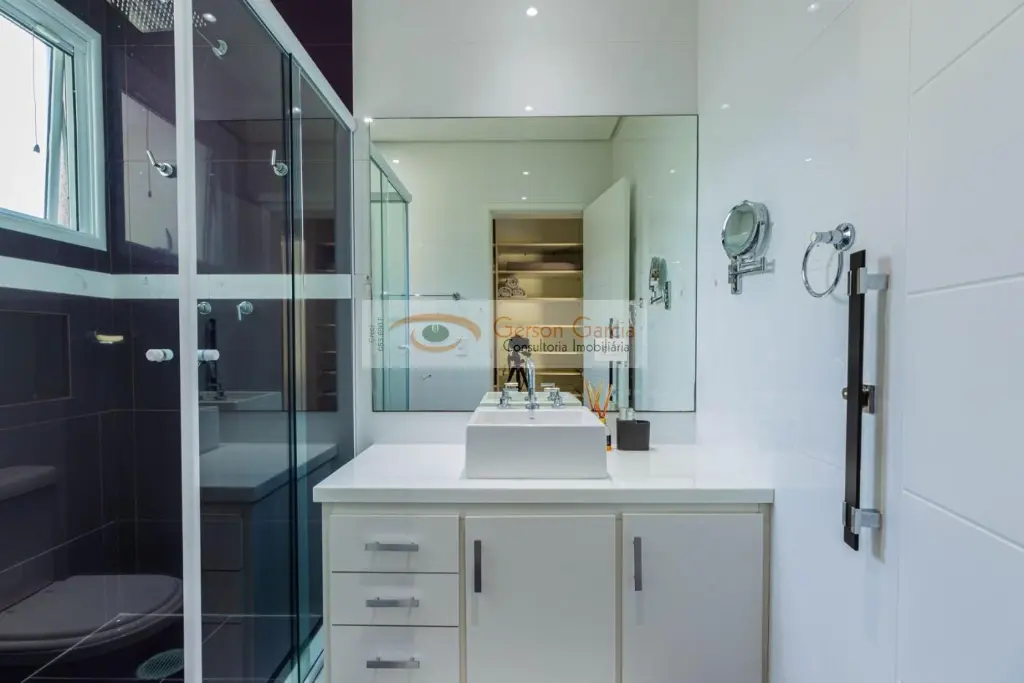 A propriedade conta também com ampla área de serviço, entrada independente de serviço, 4 vagas de garagem cobertas e sistema de aquecimento solar.
