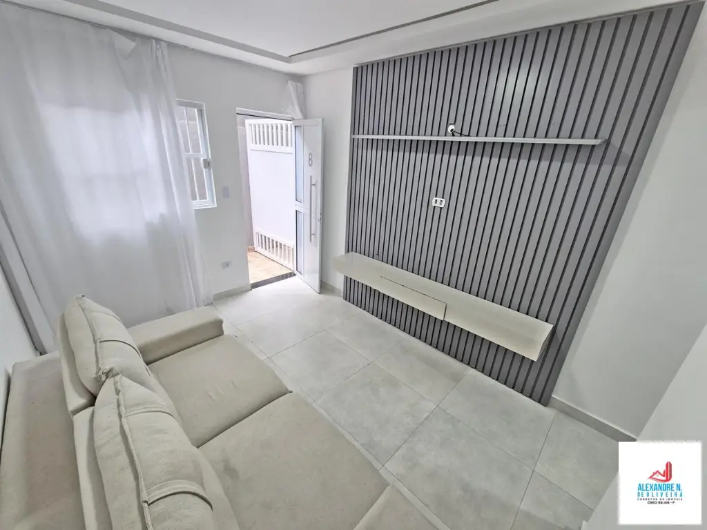 - Pontos Fortes: Sobrado novo em condomínio com 2 dormitórios, sala, cozinha, banheiro, lavandeira, quintal privativo com churrasqueira, garagem, móveis planejados, fino acabamento, ótima localização, à 70 metros da praia, no bairro Vila Caiçara, me Praia Grande, próximo a supermercados, bancos, feira de artesanatos, padarias, ciclovias.