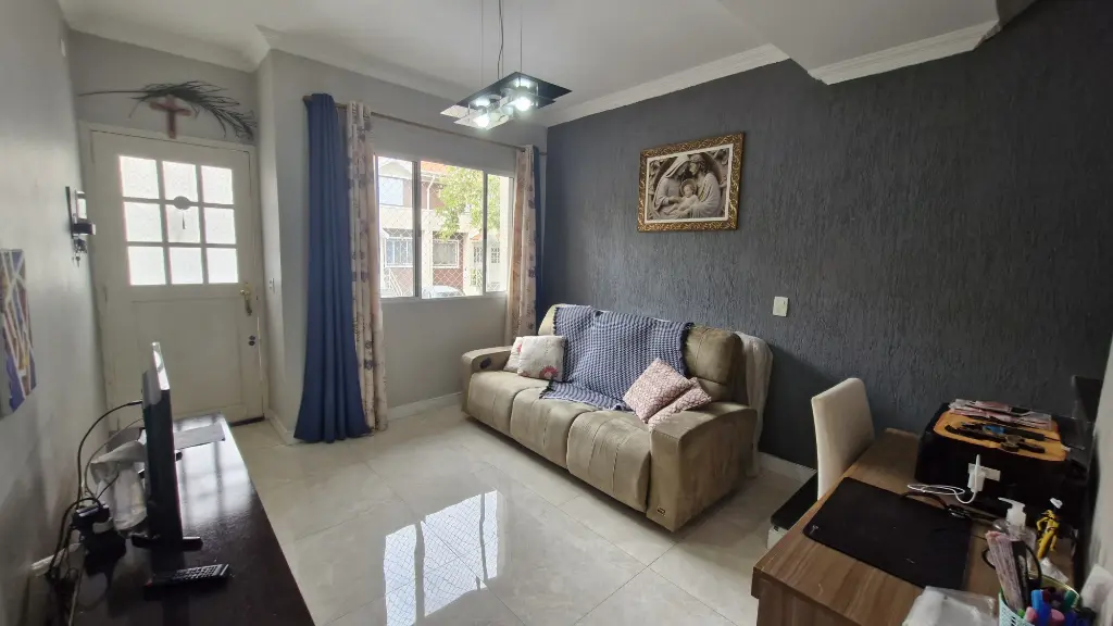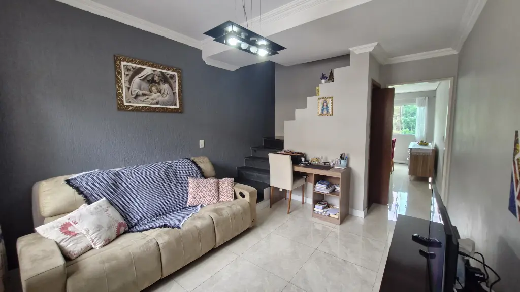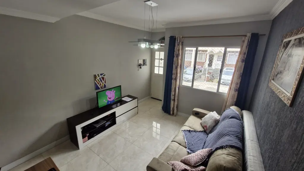 - Sala 2 ambientes com lavabo, piso porcelanato e sancas de gesso