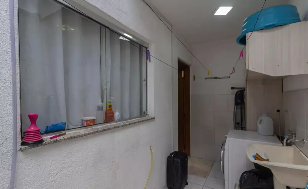 O imóvel possui atualmente 3 suítes, sendo que a terceira foi construída na área da garagem (originalmente com capacidade para 2 veículos). A modificação foi realizada em drywall, permitindo fácil reversão, caso desejado. Retornando à configuração original, o imóvel passa a contar com 2 suítes e 2 vagas de garagem.