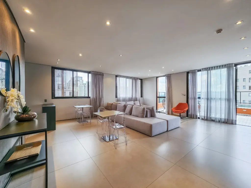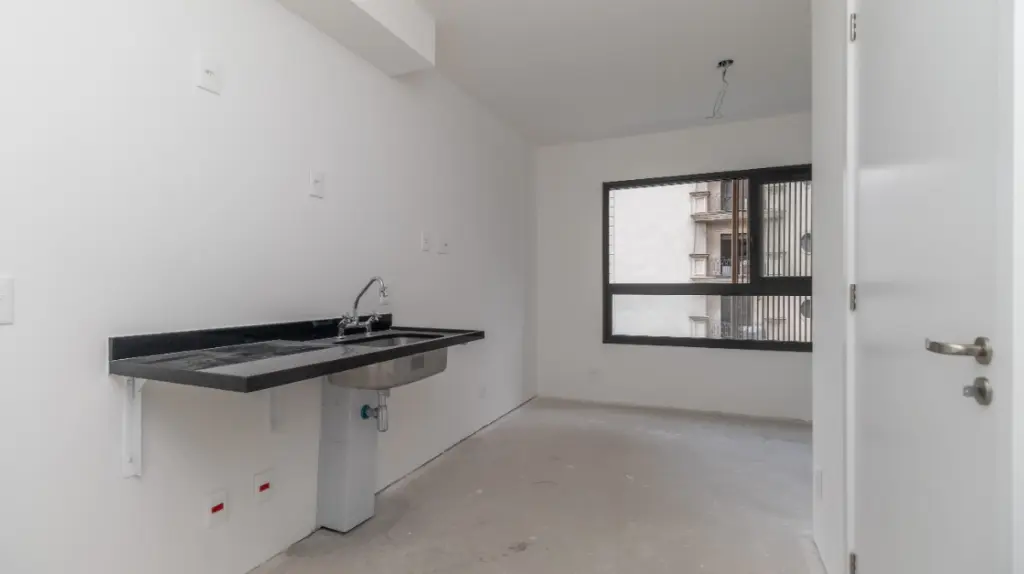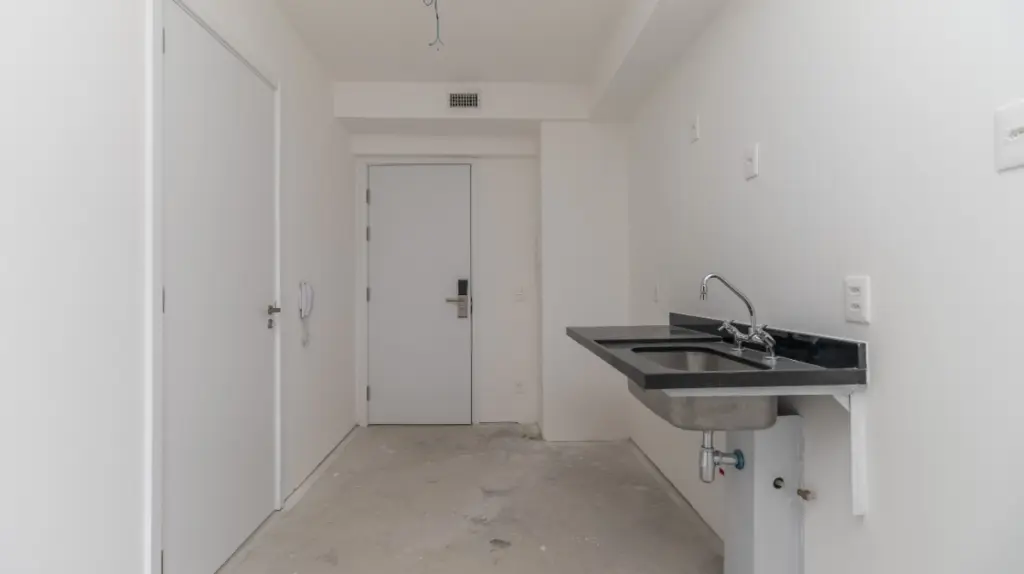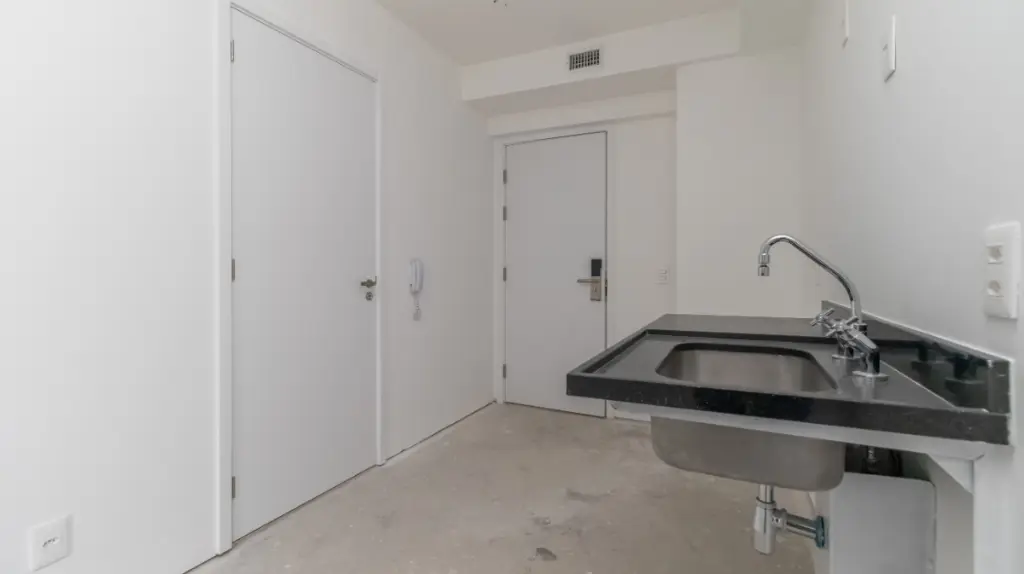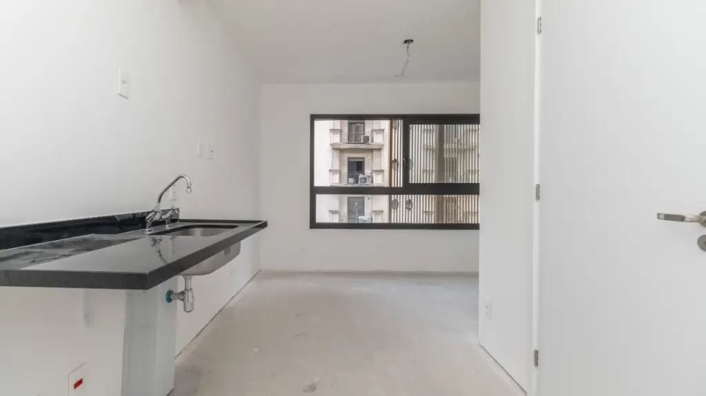 O studio conta com uma suíte completa, perfeito para proporcionar o descanso necessário após um dia agitado. A cozinha integrada traz modernidade e funcionalidade ao ambiente, tornando o espaço aconchegante.
