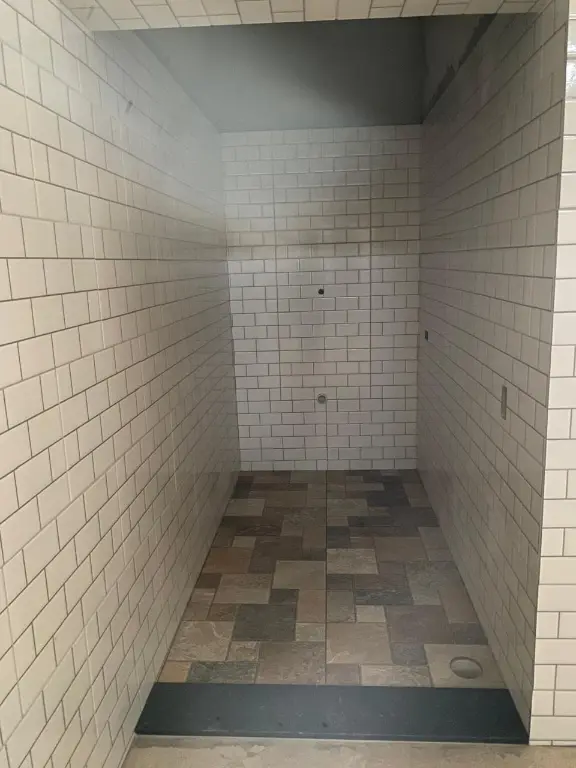 Pé direito alto 5 metros. Rua estreita para entrada de caminhões.