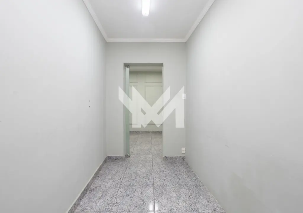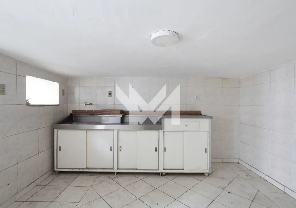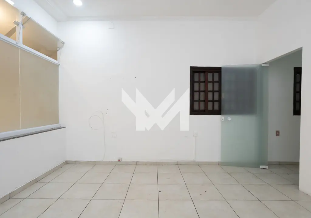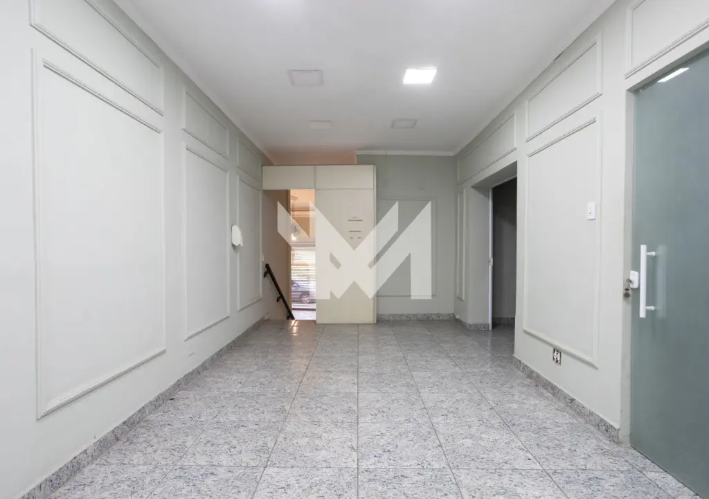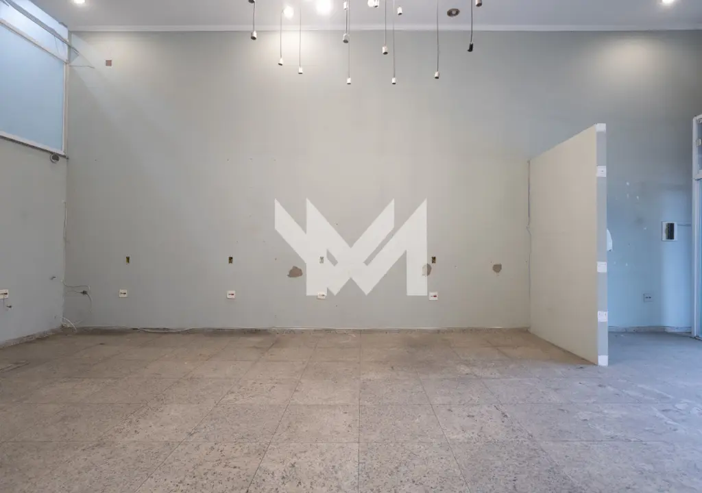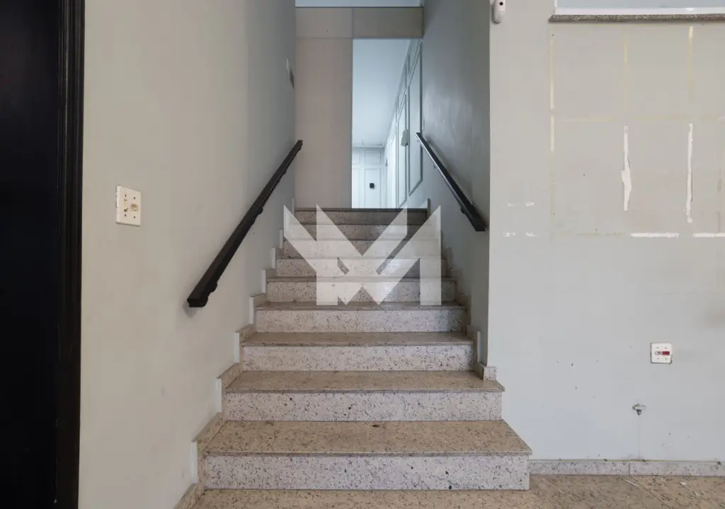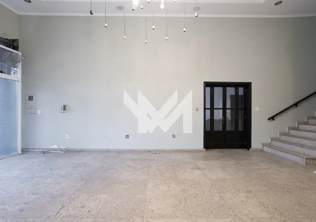 - Salão térreo com piso em granito, porta de vidro e porta de aço, pé direito com 6,00 metros, sanca com iluminação projetada, copa, banheiro e hall.