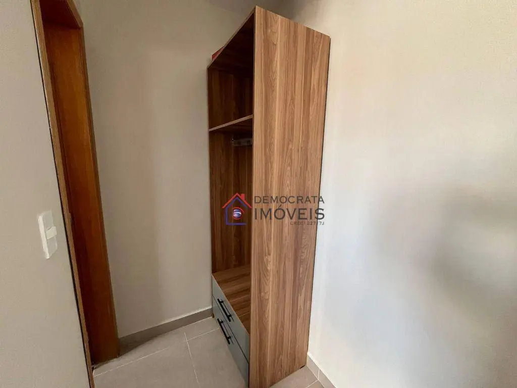 Ambiente único e versátil com dormitório, guarda-roupa, copa com gabinete, bancada para refeições, 1 banheiro privativo e opção de vaga para moto com valor adicional.